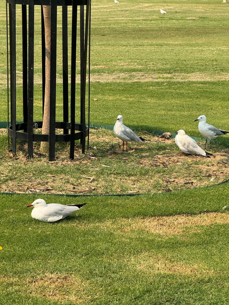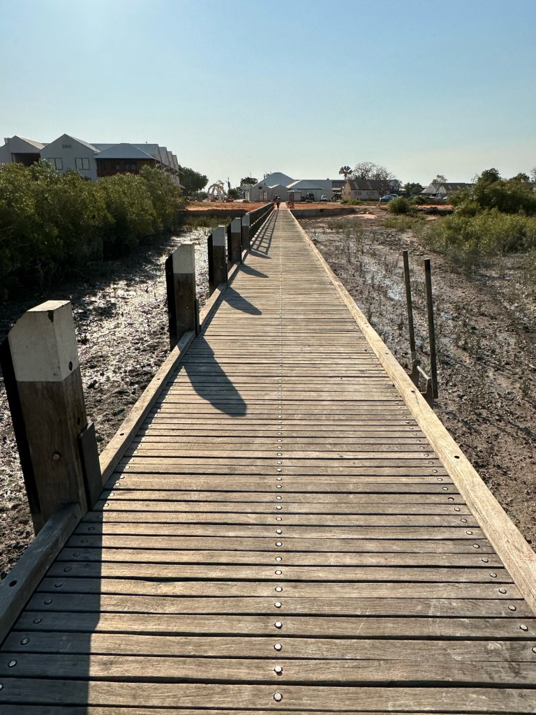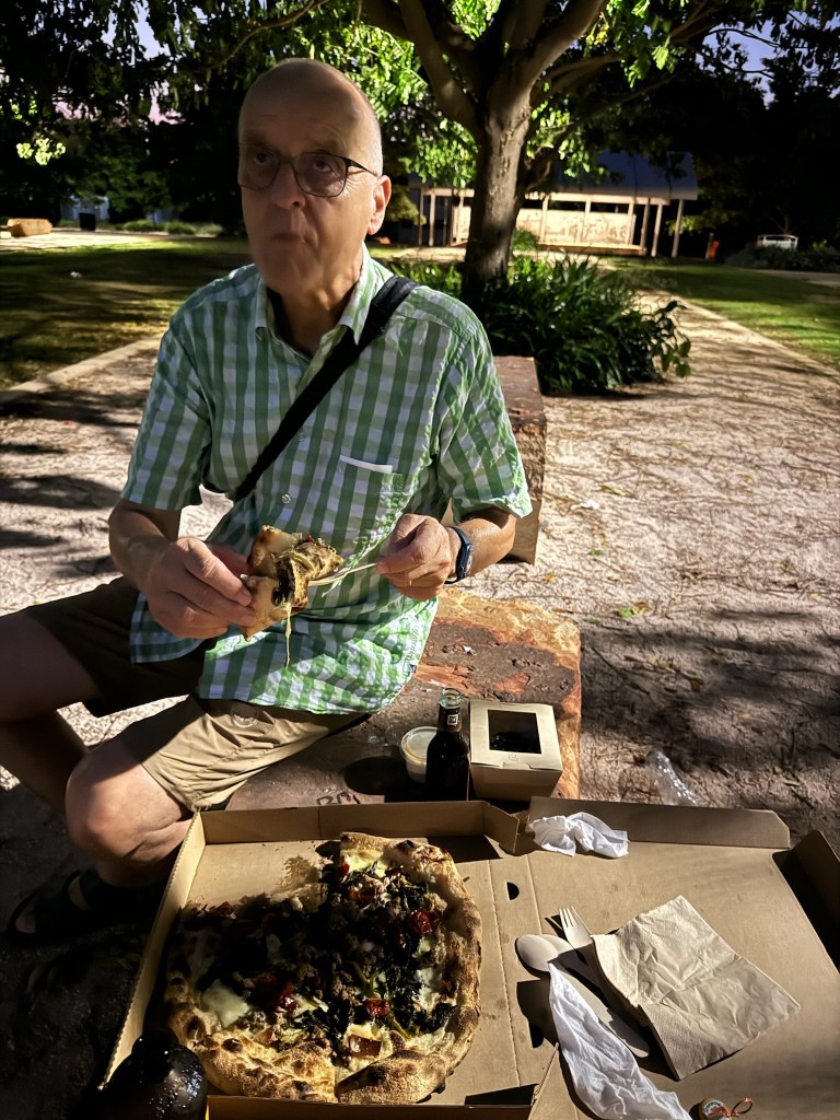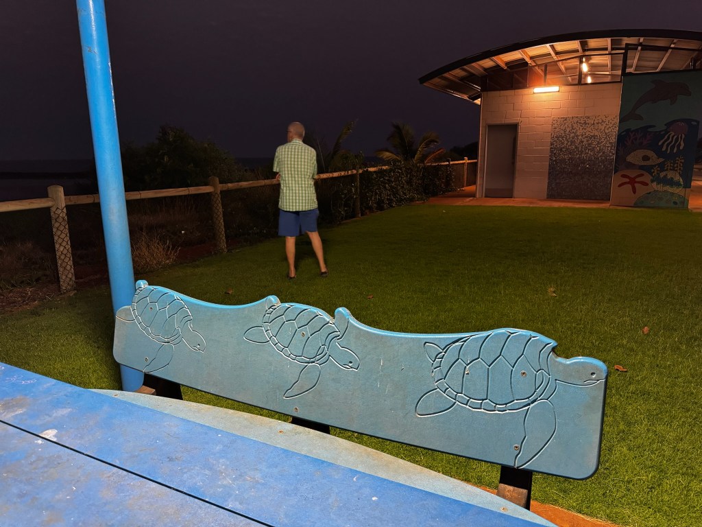 Gestern Abend sind wir durch Broome zu einem angeblich sehr guten italienischen Restaurant gelaufen. Vor Ort hat sich dann herausgestellt, dass es nur Take Away gab. So haben wir uns mit einer guten Pizza sowie Dessert und Getränken eingedeckt und anschliessend in einem nahe gelegenen Park das frugale Mahl genossen. Nachher sind wir noch ein bisschen in der Gegend gewandert und anschliessend früh zu unserem Hotel zurück. Die letzte Nacht hat ihren Tribut gefordert und so sind wir schon um 10 Uhr ins Bett.