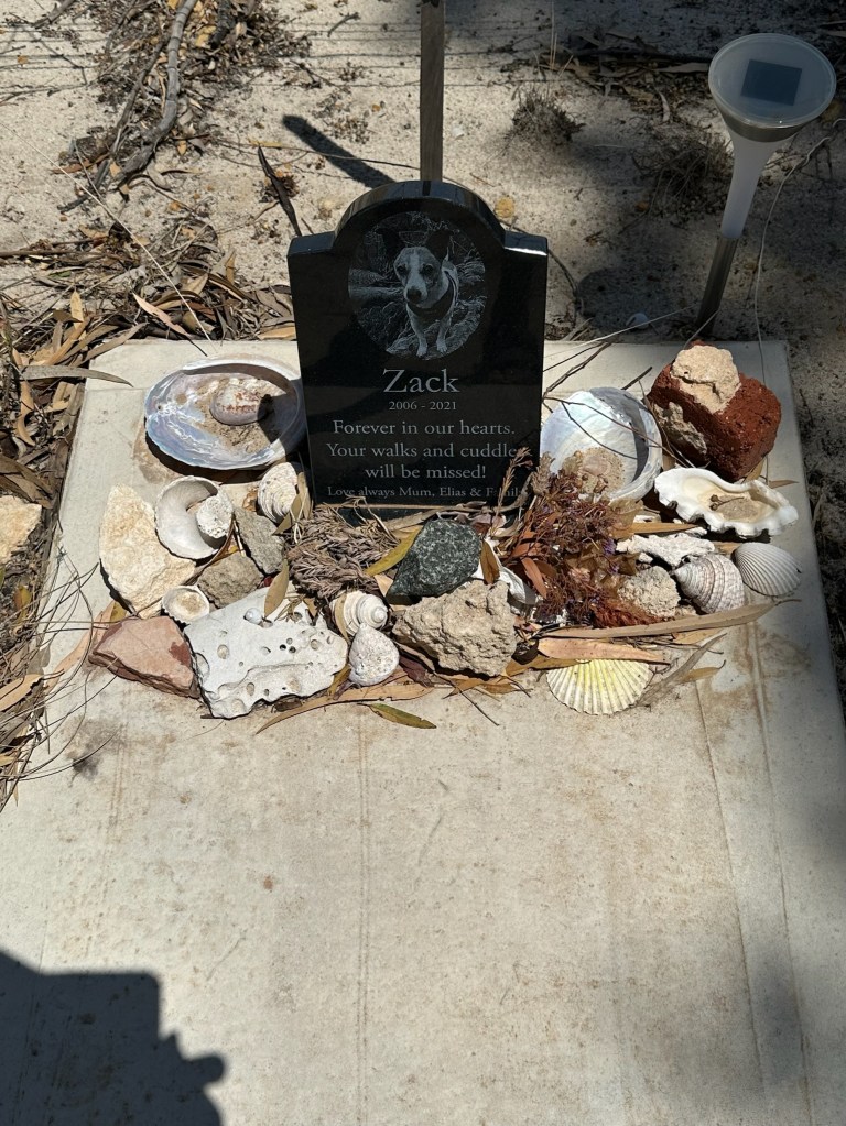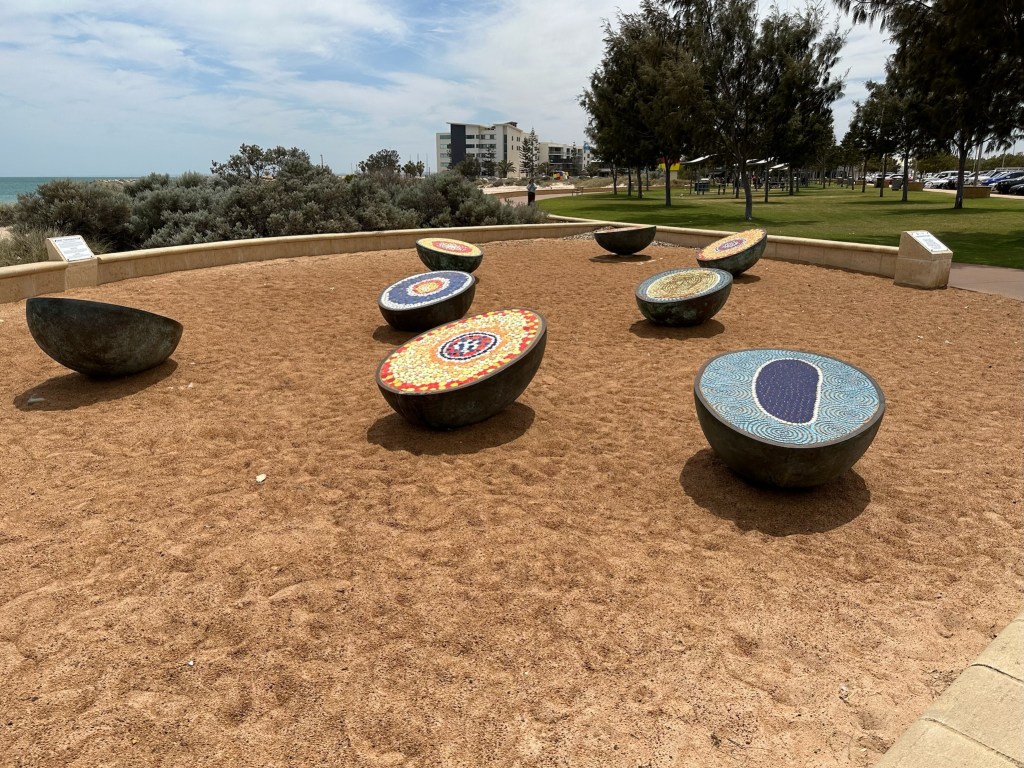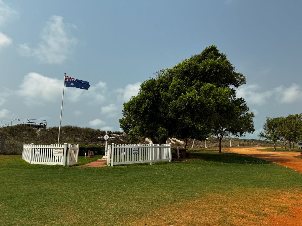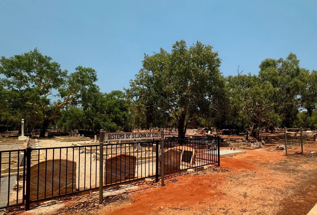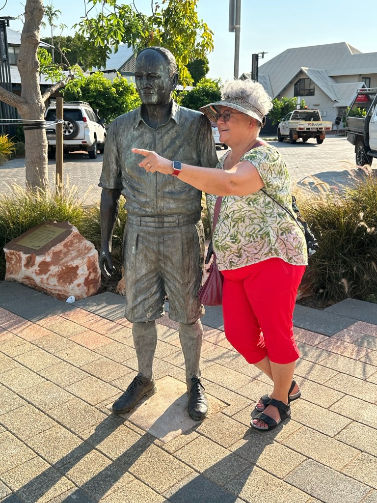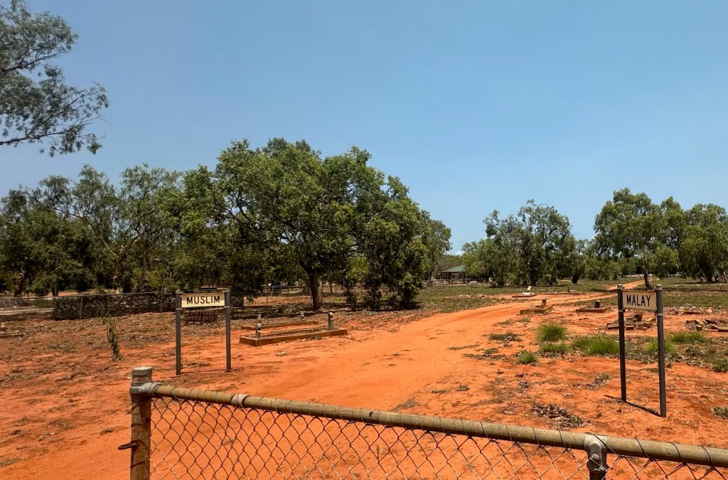 Am Sonntag sind wir zum Friedhof gelaufen, ca. 1,5 km, wieder in australischer Hitze. Der Friedhof war wirklich ein Besuch wert. Einerseits wegen der vielen Gräber der Perlentaucher aus dem letzten Jahrhundert, anderseits war der riesige Friedhof in Sektoren eingeteilt: Da gabs einen Teil für die Katholiken, einen für die Muslime, einen japanischen, einen chinesischen, einen malayischen Teil und auch die Aborigines hatten ihren Bereich. In jedem Friedhofteil sah es anders aus. Im japanischen Bereich alle Gräber wie mit dem Lineal ausgerichtet, der Boden gekiest, kein Unkraut. In andern Bereichen standen die Gräber ziemlich willkürlich in der Gegend herum. Auffallend: Bei vielen Gräbern standen Stühle oder Sitzbänke, manchmal gar ein Sofa für die Angehörigen.