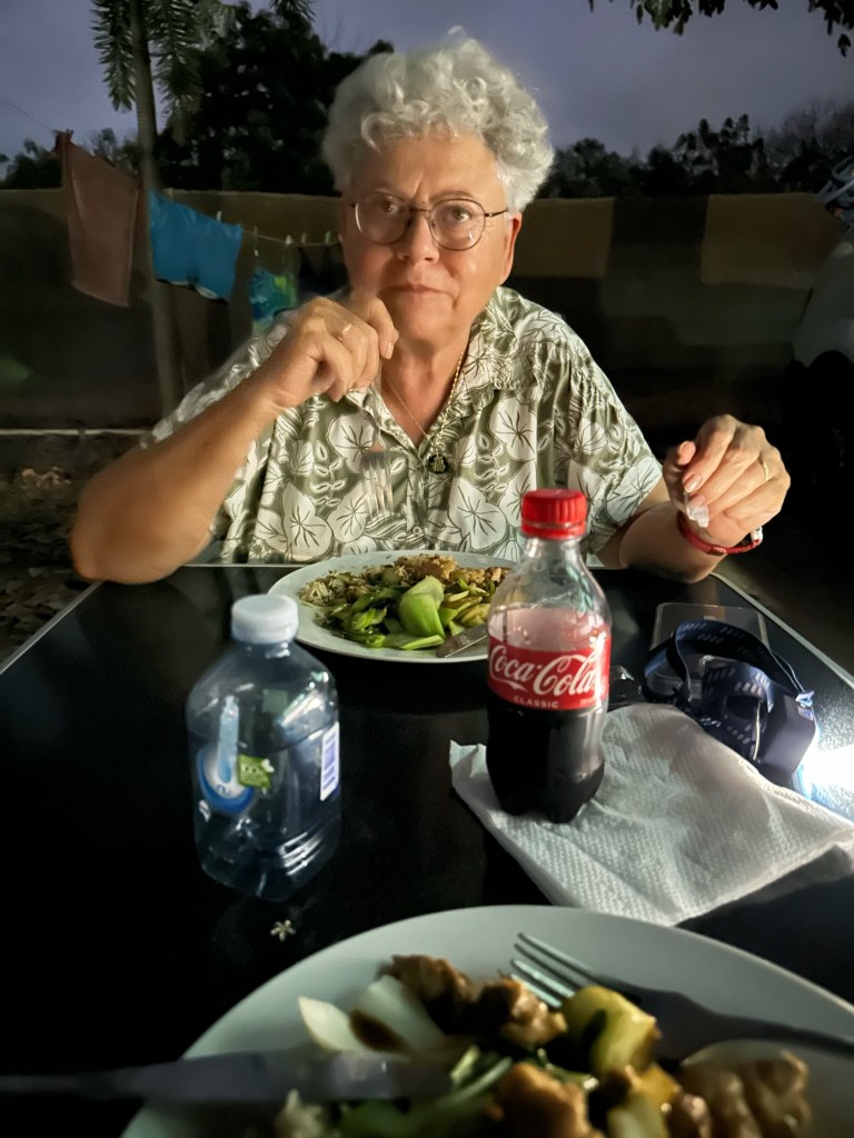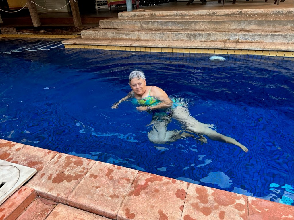 Nach dem Friedhofbesuch sind wir zum Vermieter unseres Wohnmobils gelaufen, auch weil dort gemäss Plan eine Bushaltestelle war. Diese stellte sich dann als Depot für Schulbusse heraus und auf einen Linienbus hätten wir bis in alle Ewigkeit warten können. Wie wir so dastanden und uns über die Lage der nächsten Haltestelle (weit, weit weg) informierten, hielt ein Auto und die Fahrerin erkundigte sich nach unserem Problem – hier laufen (ausser uns) offenbar keine Bleichgesichter herum, schon gar nicht in der Mittagshitze. Nachdem die Fahrerin unser Problem erfasst hatte, chauffierte sie uns spontan zu unserem B&B zurück. Nachmittags haben wir dann am Pool verbracht und abends haben wird längere Zeit im Garten unseres B&B mit einem Angestelltenpaar, das wie wir kurz gesagt als geriatric gipsys unterwegs ist und hier einige Wochen ihre Haushaltkasse aufbessert, geplaudert.