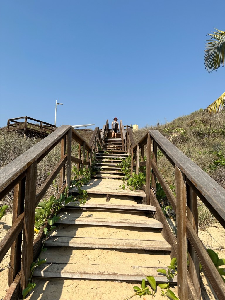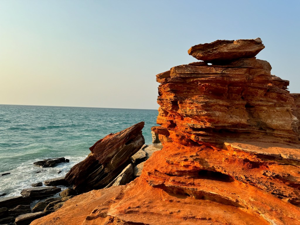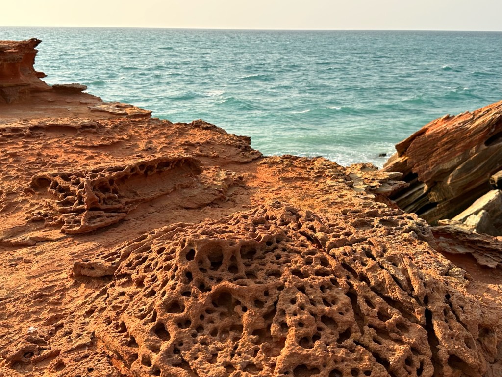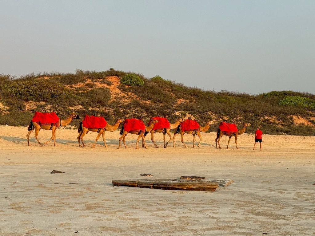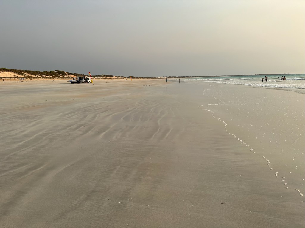 Nach einem Lunch sind wir mit dem Bus zum Cable Beach gefahren. Was für ein Strand: Sehr breiter Sandstreifen, kein Abfall, wenig Leute. Das galt zumindest Richtung Süden. Richtung Norden durfte der Strand befahren werden und so hatte es dort viel mehr Volk und natürlich standen viele Autos herum, die meisten SUV’s. Kamelreiten am Strand war auch möglich, worauf wir basierend auf einer früheren diesbezüglichen Erfahrung gerne verzichtet haben.