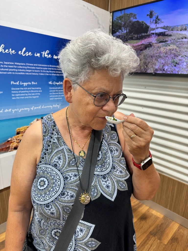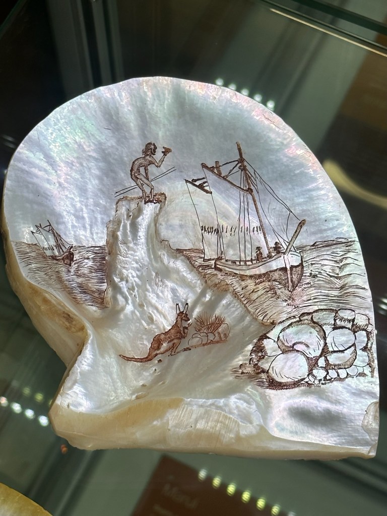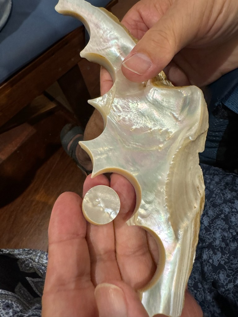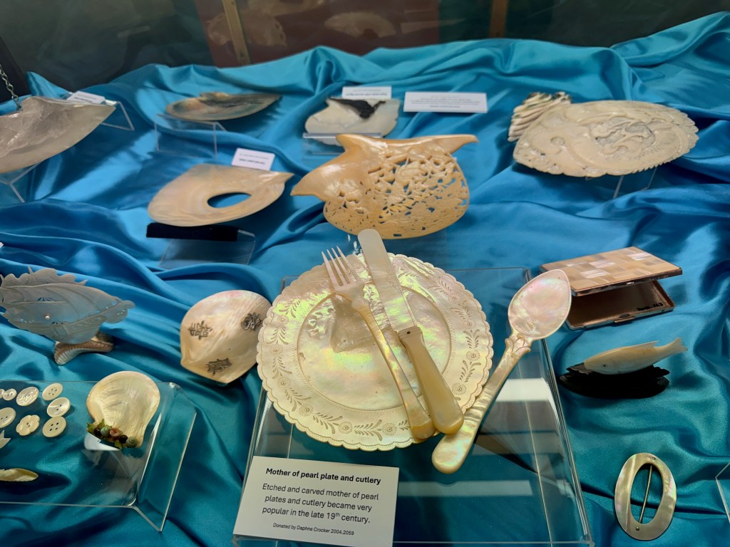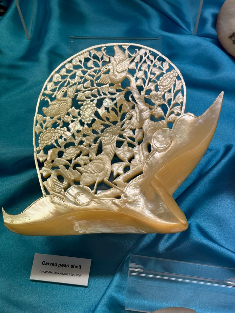 Anschliessend sind wir zum Perlenmuseum zurück, weil wir erfahren haben, dass um 11.30 Uhr eine Führung stattfinden würde. Diese war sehr informativ, zumindest für Carole, für mich etwas weniger. Warum: Die Führerin hat in einem Affenzahn gesprochen und dazu noch in einer Tonhöhe in der mein Hörvermögen eine Delle hat. Glücklicherweise habe ich mich vorgängig schon schlau gemacht und so konnte auch ich Einiges aufschnappen.
