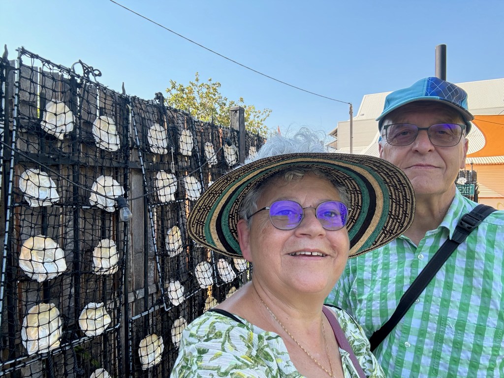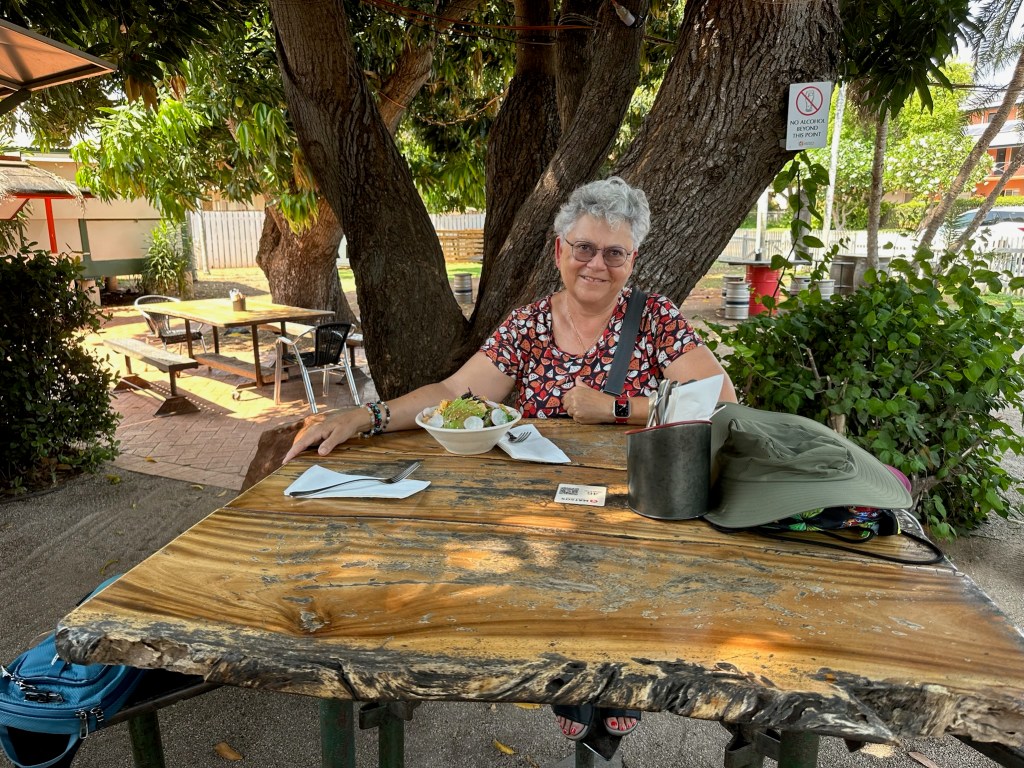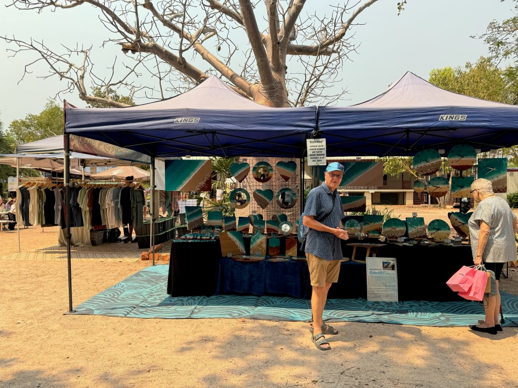 Am Samstag findet in Broome jeweils ein Markt statt, direkt vor unserem B&B. Natürlich haben wir diesen besucht. Die Stände standen kreuz und quer in einem Park, nicht allzu eng beieinander und das Angebot unterschied sich sehr vom Angebot der Auer Kilbi. Gemütlich haben wir trotz der Hitze ausgehalten und dieses und jenes betrachtet. Mit einem Trikefahrtanbieter sind wir ins Gespräch gekommen und wir werden dann nächste Woche einen Trikeausflug machen. Bin mal gespannt …..