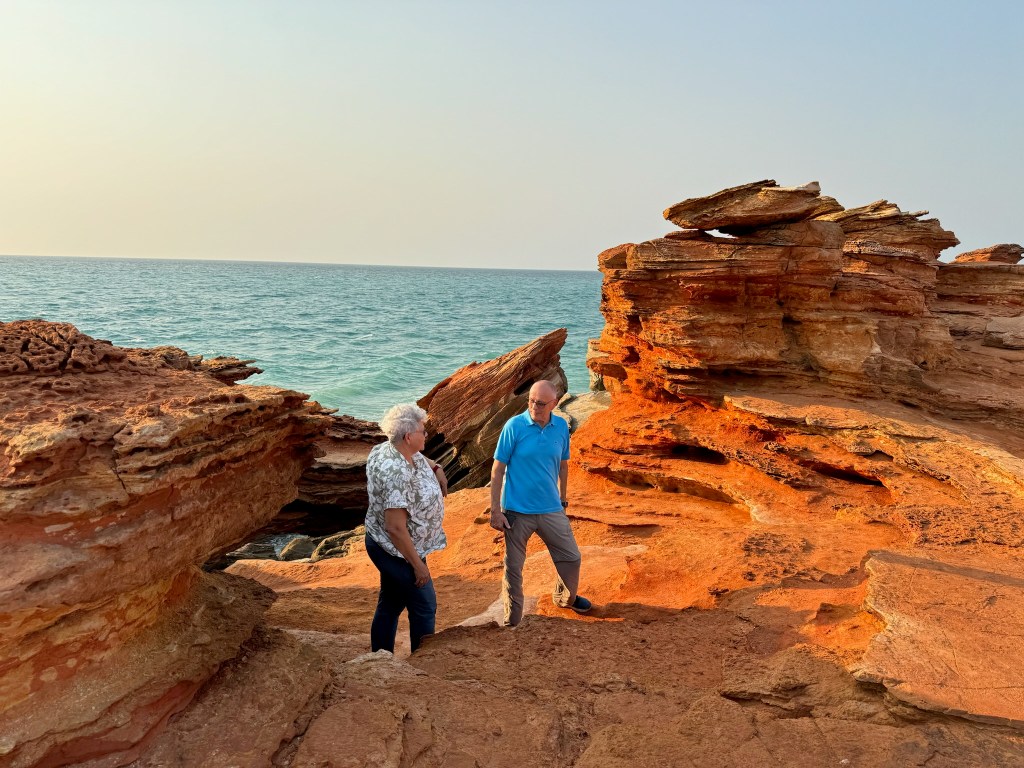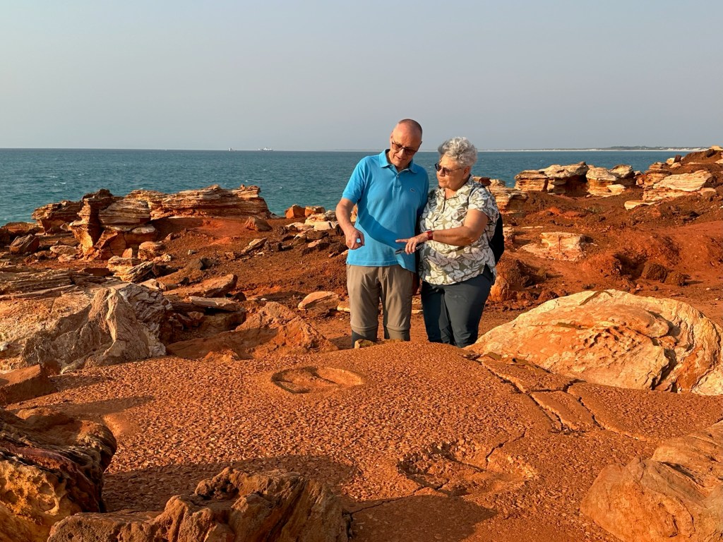 Am Samstag haben wir uns weiter eingerichtet, Einkäufe gemacht und abends den Sonnenuntergang am Strand des Cable Beach genossen, zusammen mit unseren Campernachbarn Sabine und Richard Stier aus Bamberg (Bayern). Sabine und Richard haben uns in den letzten drei Tagen viele gute Tipps für unsere Reise gegeben – vielen Dank! Weil die einzige Strasse nach Süden wegen der Buschbrände immer noch leicht unsicher war, haben wir uns entschieden, eine weitere Nacht am Cable Beach zu bleiben.