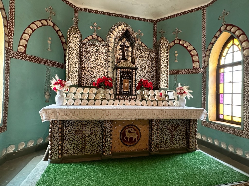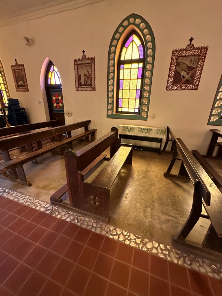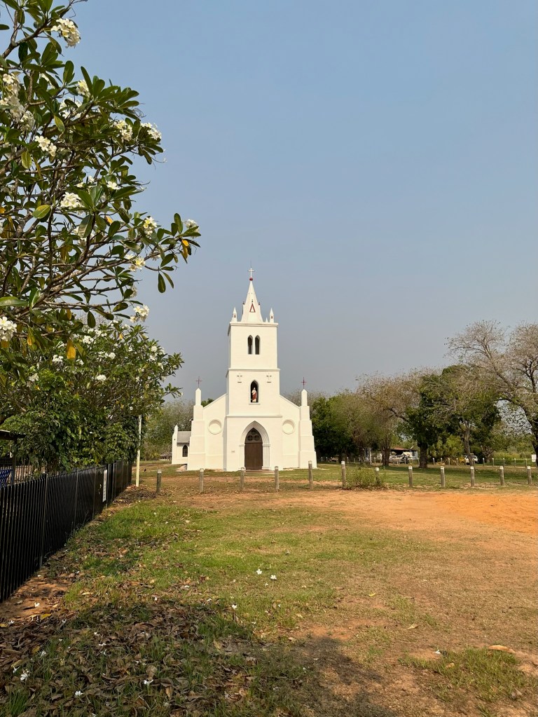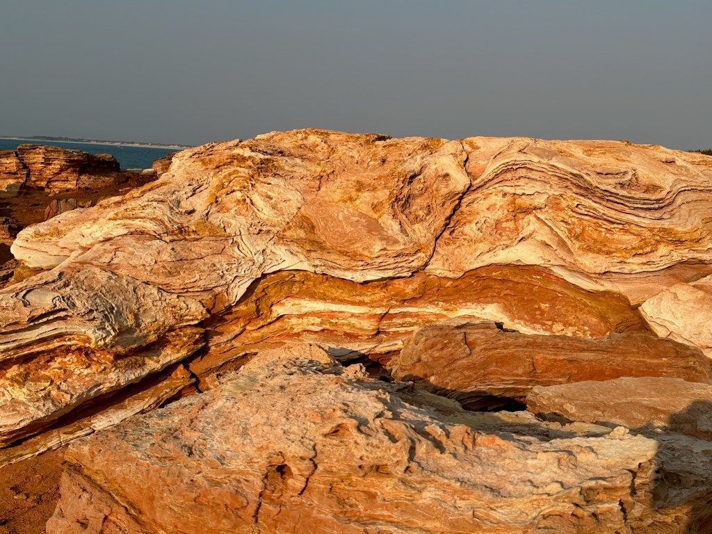 Heute sind wir von unserem Campingplatz aus zum One Arm Point in der Cygnet Bay gefahren, rund 220 km. Zu sehen gab es nicht viel – interessant wäre die Flut gewesen, mit 10-12 Metern die zweithöchste weltweit und sie kommt mit einer Geschwindigkeit von rund 25 km/h. Leider bot der dortige Zeltplatz keine Stromanschlüsse an und so haben wir uns entschieden zurück zum Zeltplatz am Cable Beach zu fahren, also nochmals 220 km. Unterwegs haben wir die Kirche Notre Dame de Sacre im kleinen Ort Beagle Bay besucht. Diese ist wegen ihren Muschelverzierungen bekannt. Nun bleiben wir für mindestens zwei Nächte auf dem Zeltplatz am Cable Beach, einerseits weil wir das Staircase to the Moon sehen wollen, eine ganz spezielles Naturereignis das nur bei Vollmond und gleichzeitiger Ebbe sichtbar ist. Anderseits ist zur Zeit die Weiterfahrt nach Port Hedland wegen Buschbränden nicht möglich und so hoffen wir, dass wir am Sonntag die rund 600 km von hier aus entlang der Great Sandy Desert nach Port Hedland fahren können.