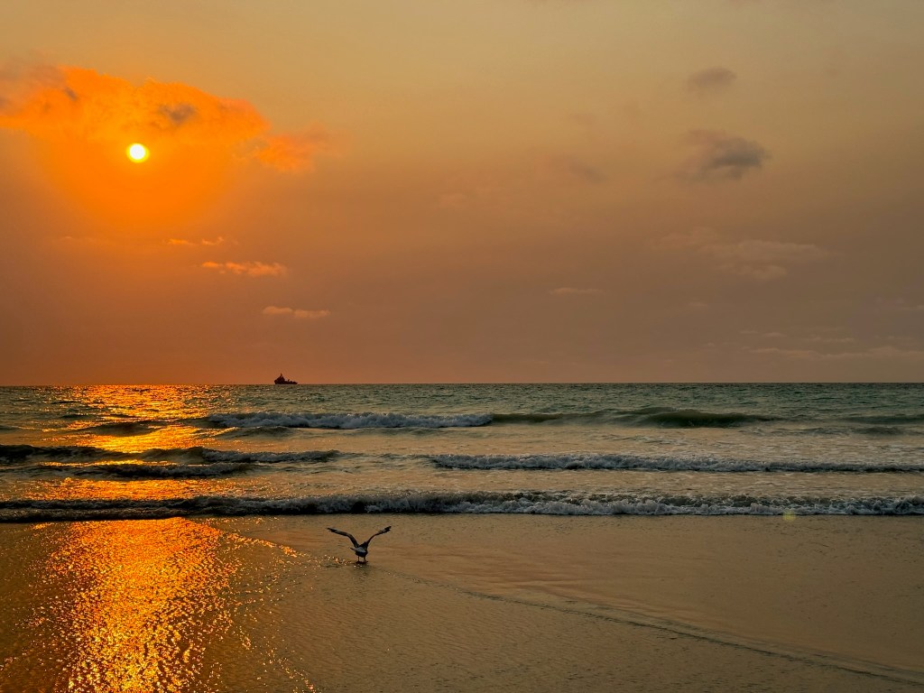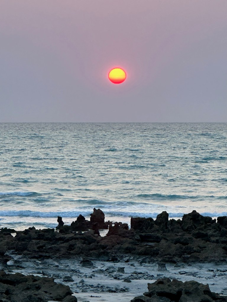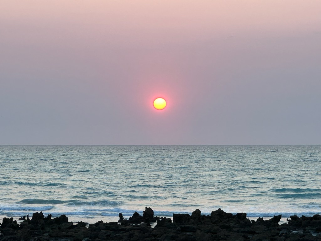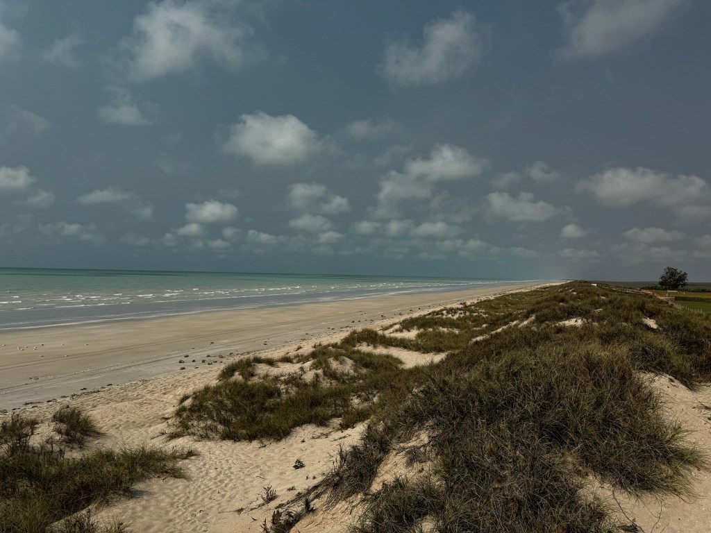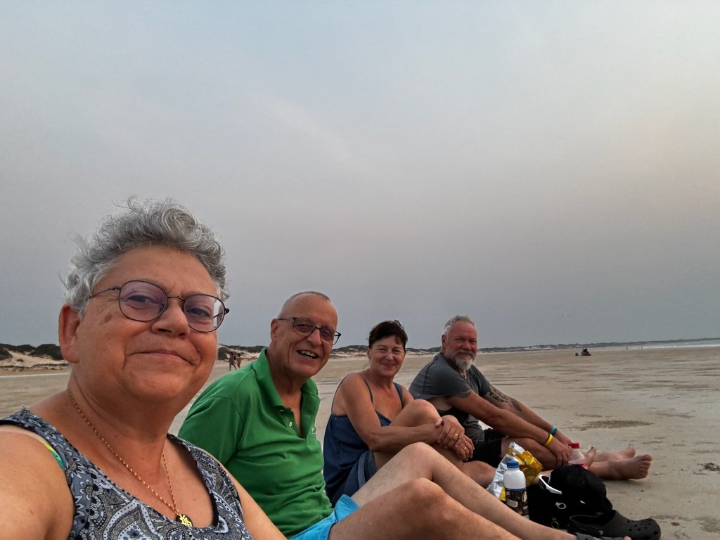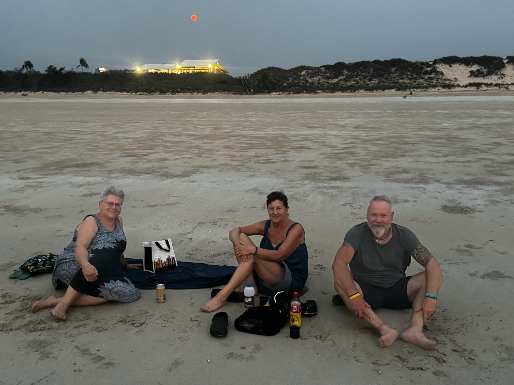 Am Sonntag haben wir uns für die Weiterfahrt vom Montag vorbereitet (Frischwasservorrat auffüllen, Abwasser ablassen) und nachmittags sind wir zum Baden ans Meer. Wassertemperatur 29 Grad, genau so wie ichs gern habe. Am Abend sind wir mit Sabine und Richard ins Hotel-Restaurant Mangroves in Broome um das Naturschauspiel Staircase to the Moon zu erleben. Leider war – vermutlich wegen der Buschbrände – ein leichter Smog am Horizont, sodass der Mondaufgang nicht sichtbar war. Wie schade, war das doch eine seltene und einmalige Gelegenheit. Immerhin haben wir einen ganz gemütlichen Abend zusammen mit Sabine und Richard verbracht, was uns über die Enttäuschung hinweghalf. Wegen eines Tipps von Richard werden wir Morgen nicht direkt nach Port Hedland fahren, sondern nur bis zum Eighty Miles Beach, immer noch rund 370 km. Um den dortigen Zeltplatz zu erreichen müssen wir zwar 9 km über eine Naturstrasse fahren, was vom Mietvertrag her gerade noch zulässig ist.
