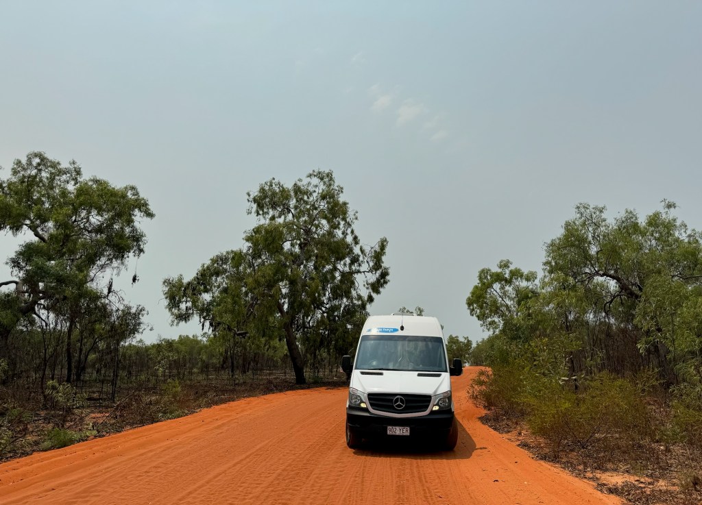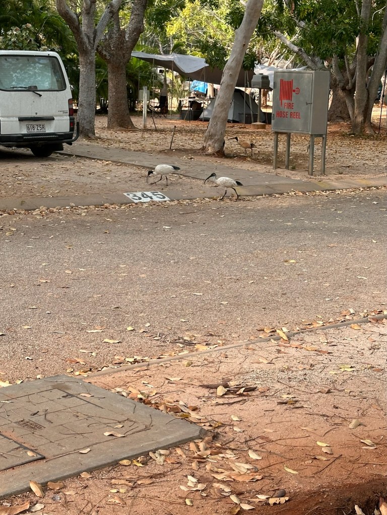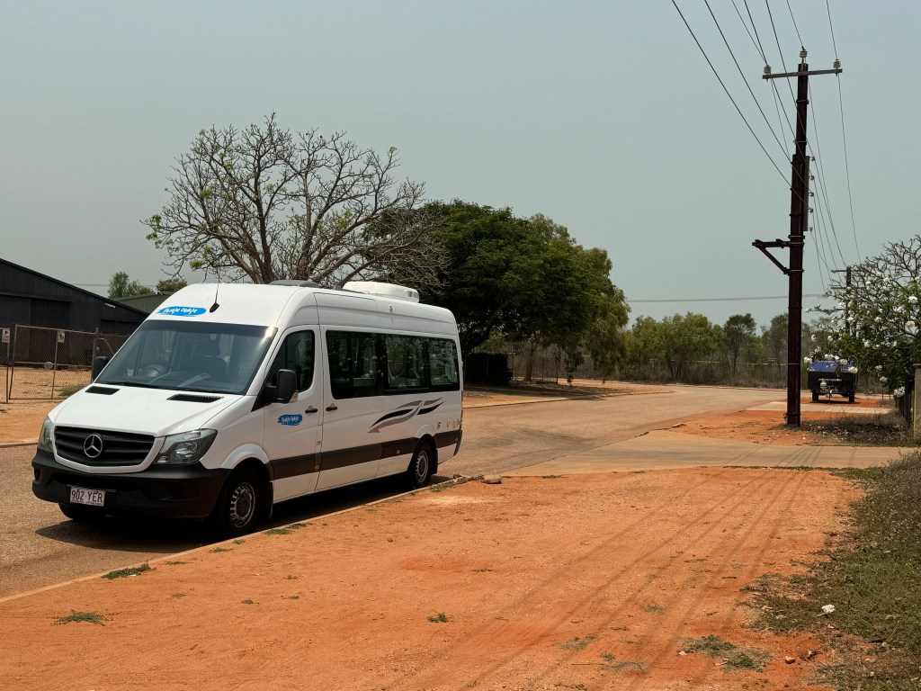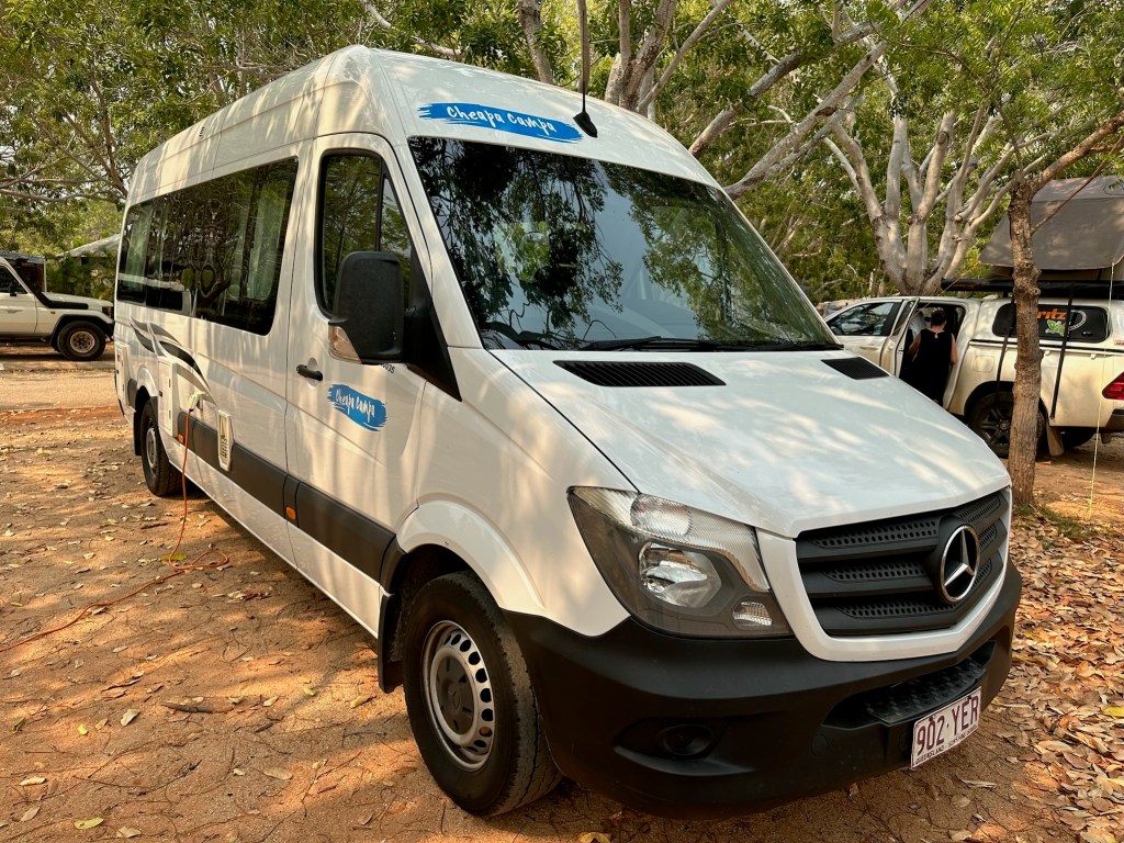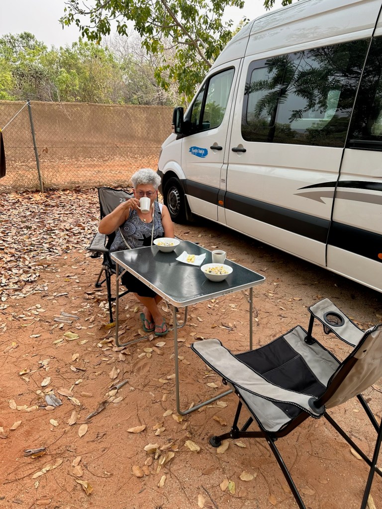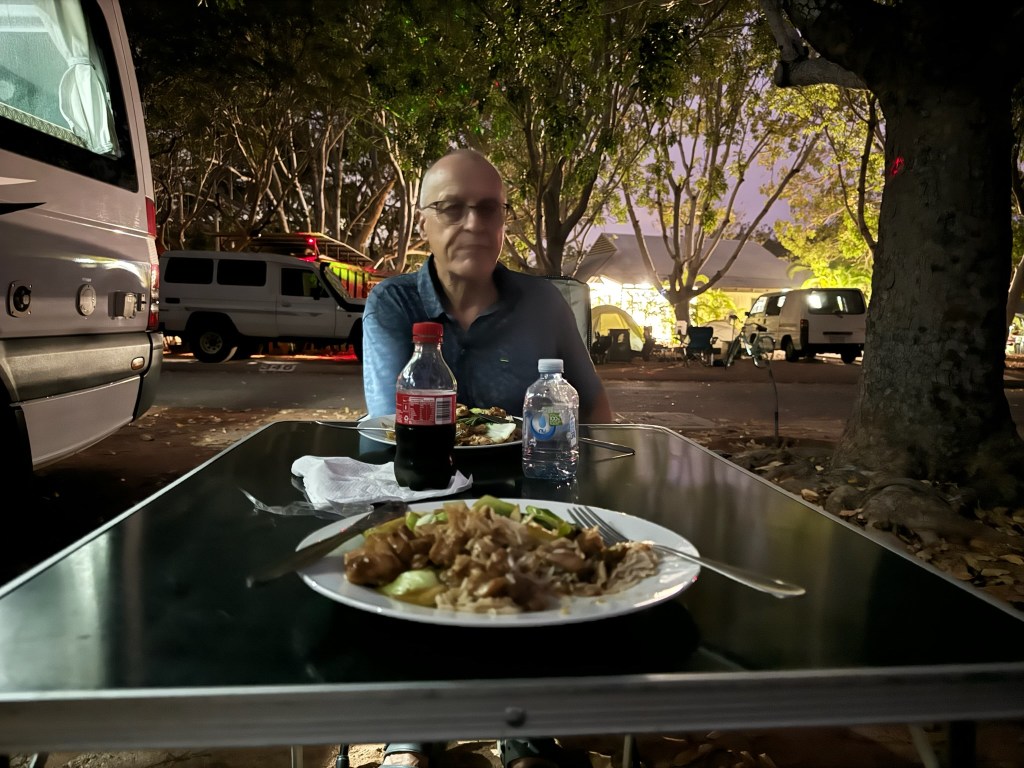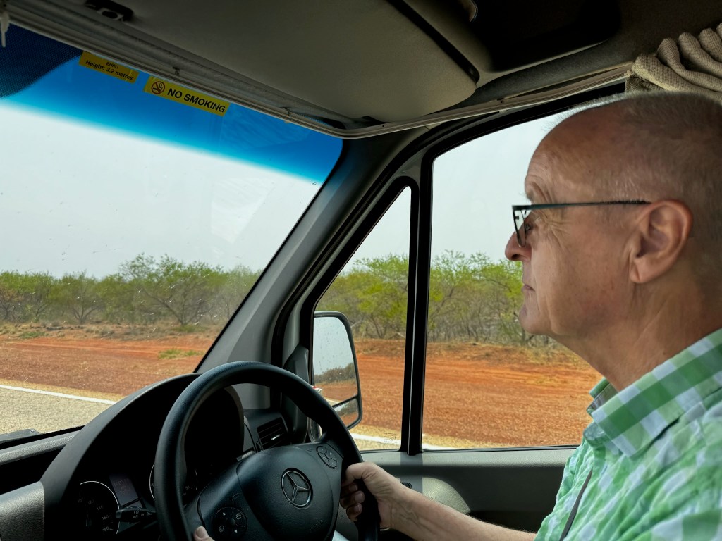 Am Donnerstag haben wir unsren Campervan abgeholt. Der Mercedes Sprinter hat sich, so können wir schon nach zwei Tagen sagen, als für uns ideales Fahrzeug herausgestellt. Es hat zwar schon 198’000 km auf dem Tacho, aber es ist sehr gut erhalten, mit WC und Dusche, kleiner Küche sowie einer Klimaanlage ausgerüstet. Platz ist auch genügend vorhanden. Allerdings brauchten wir am ersten Tag einige Zeit und noch mehr Schweiss im feucht-heissen Klima, bis alles funktionierte. Glücklicherweise sind wir am Cable Beach in der Nähe von Broome auf den Campingplatz und hatten so genügend Zeit fürs Pöbeln. Schliesslich schaffte Carole mit ihren technischen Fähigkeiten und dem Rat eines Campernachbarn das Kunststück und brachte alle Geräte zum Laufen. Danach hat sie ein feines Nachtessen – ein stir fry Chicken und Pak Choi mit Reis – zubereitet, während der Chauffeur (ich!) gemütlich draussen am Campingtisch die Zeitung gelesen hat. Dafür habe ich dann den Abwasch übernommen.