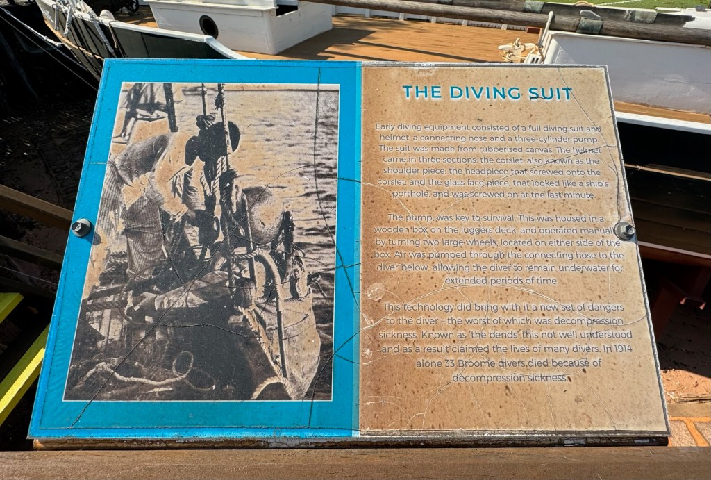 Am Dienstag besuchten wir das Museum von Broome. Hier erfuhren wir weitere interessante Dinge über die Entstehung von Broome, zur Perlenfischerei, dem Überfall der Japaner im 2. Weltkrieg und über die vielen Dinosaurierspuren in der Umgebung Brooms.