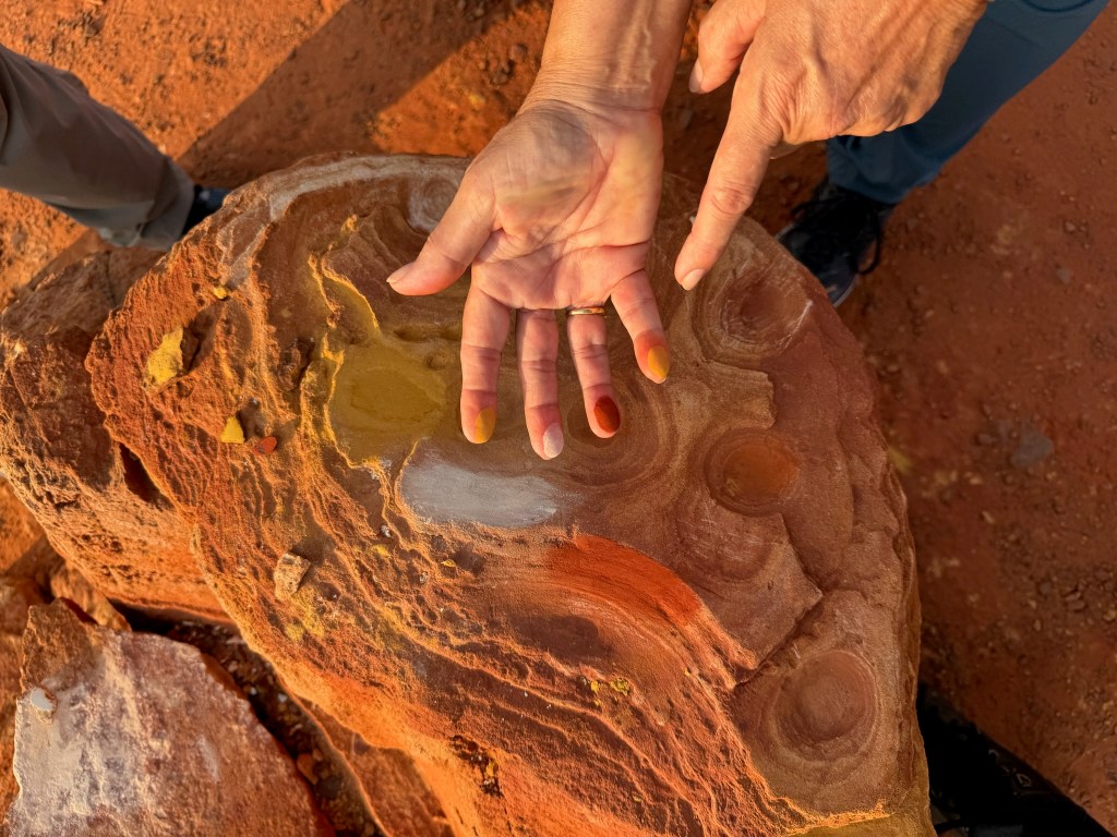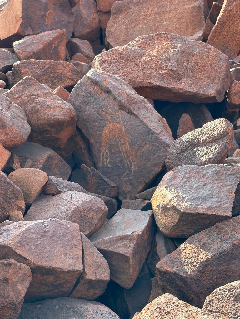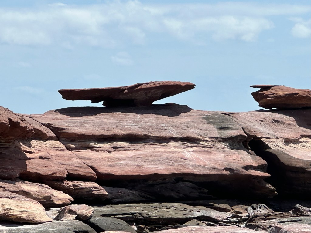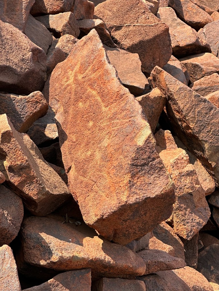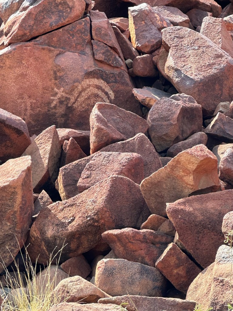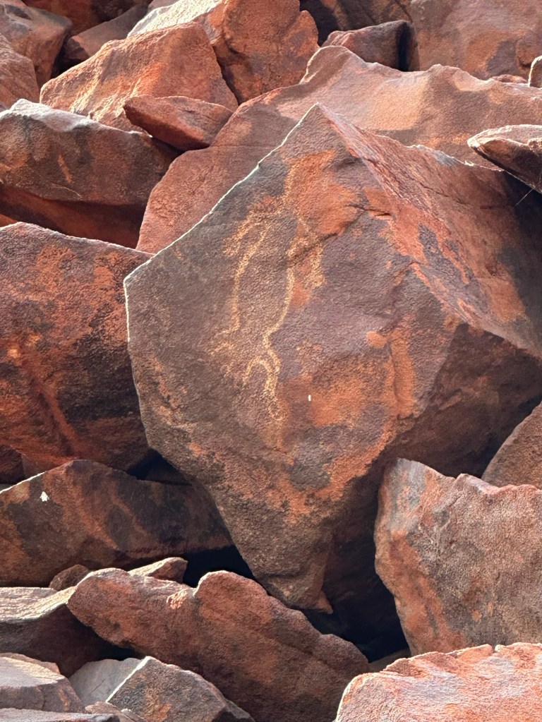 Bereits um 6 Uhr in der Früh holte uns der Wecker aus dem Schlaf. Sofort hiess es Zusammenräumen, ein schnelles Frühstück im Stehen und dann fuhren wir zur Burrup Peninsula, wo uns unser Führer Peter, dessen Mutter eine Aboriginie war, erwartete. Auf der knapp 1 1/2 stündigen Führung erzählte er uns viel aus dem Leben der Aborigines und erklärte uns manche Felszeichnung. Sehr spannend und informativ. Hoffentlich wird der Murujuga National Park zum UNESCU Weltkulturerbe und damit besser geschützt.