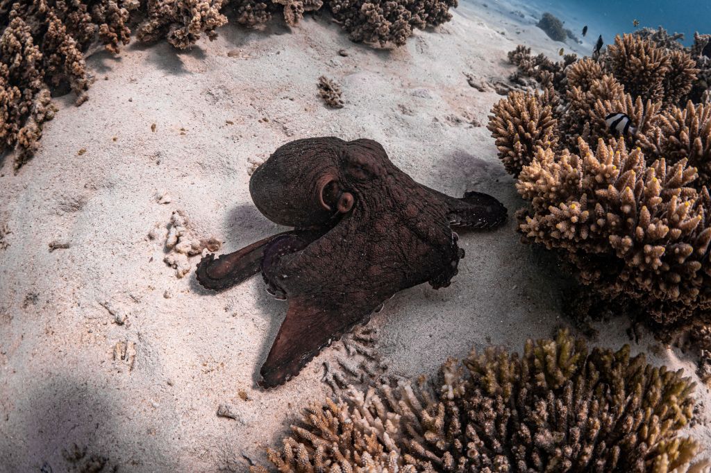 Der Coral Bay (klicken) vorgelagert befindet sich das Ningaloo Reef. Das Korallenriff befindet sich hier nicht wenige Meter vor der Küste wie etwas weiter nördlich, sondern man muss mit einem Boot rausfahren. Für heute haben wir einen 7-stündigen geführten Schnorchelausflug zum Riff gebucht. Um 10 vor 8 hiess es bereit sein – Taucherbrille, Flossen und Schwimmanzug fassen. Am Vormittag war es noch ziemlich kühl auf dem Meer, was uns das erste Mal frösteln liess. Es sollte nicht das einzige Mal bleiben und sich noch bis zum Zähneklappern steigern. Der erste Halt war für 40 Minuten schnorcheln geplant – es wurden dann 1 1/2 Stunden im kühlen Wasser. Dafür wurden wir mit spannenden Blicken auf die vielfältigen Formen der Korallen und ihrer Lebewesen belohnt. Wir sahen Schildkröten, die knapp unter uns elegant durchs Wasser schwebten, Fische in vielen Farben und Grössen, ja sogar einen Tintenfisch und Kraken sahen wir beim ersten „Tauch“gang. Dann – wir schlotternd – fuhr unser Schiff ein Stück die Küste hinauf, wo das Meer recht unruhig war. Von einem ausspähenden Flugzeug aus wurden Mantarochen gesichtet. An der richtigen Stelle erfolgte der nächste Sprung ins Wasser. Kurz darauf sahen wir den ersten Mantarochen, der direkt unter uns einen Looping schwamm, als wollte er uns seinen weissen Bauch zeigen. Wir sahen vor der Rückkehr aufs Schiff noch ein paar weitere Mantas mit einer Spannweite von bis zu 4 Metern. Das Schiff war nicht verankert und so musste man sich auf dem Weg zum Einstieg in der Meeresströmung ziemlich anstrengen, was wenigstens etwas Wärme gab. Während das Schiff nach dem Schnorchelgang weiterfuhr und gegen Wind und Wellen ankämpfte wurden wir verpflegt. Danach mussten wir auf dem Weg zu den Riffhaien durchs Korallenriff schwimmen – nicht ungefährlich angesichts des engen Durchgangs, der Wellen und der Strömung – links und rechts kamen die Korallen bis zur Wasseroberfläche. Auf der Aussenseite des Riffs wurden wir dafür mit dem Blick auf einige Riffhaie belohnt, welche sich von kleinen Fischen die Zähne putzen liessen. Obwohl uns die Wellen hin und her warfen, konnten wir uns kaum von diesem Anblick lösen. Unsere Führer haben uns jeweils vor dem Einstieg ins Wasser Verhaltensregeln gegeben und viele Informationen zu dem, was uns erwarten wird. Sonst hätten wir z.B. die Zahnputzfische kaum wahrgenommen. Die Schnorcheltour war ein Highlight und wird uns garantiert unvergessen bleiben. Die Fotos wurden von einem begleitenden Unterwasserfotografen gemacht.