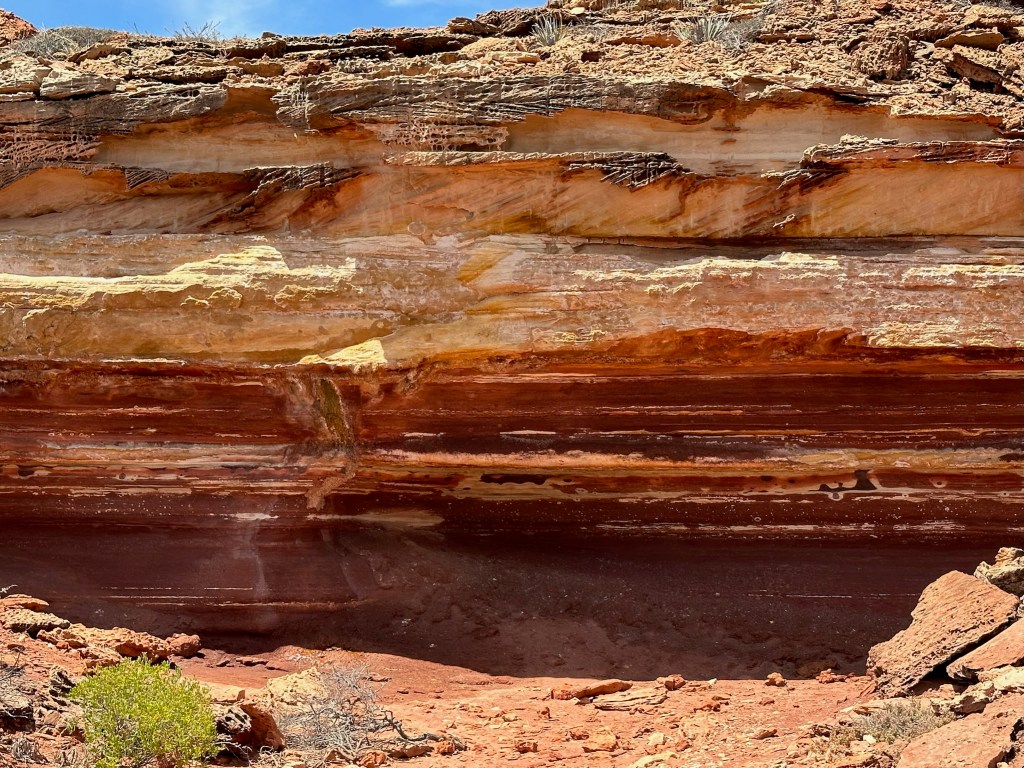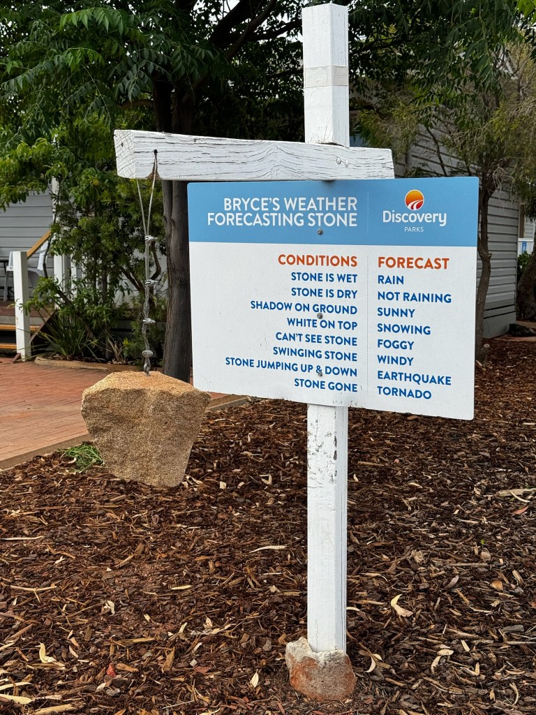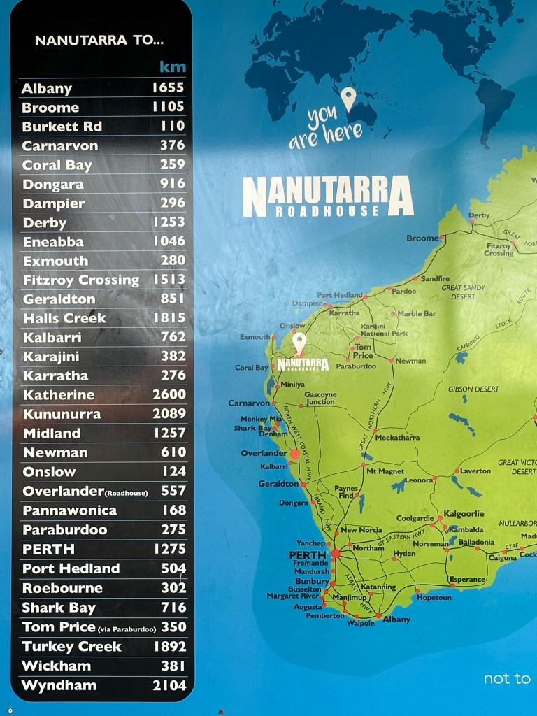 Danach haben wir uns in Karratha umgesehen, die dortige katholische Kirche Saint Paul und ein eindrückliches Kulturzentrum besucht bevor wir die rund 280km zum Roadhouse Nanutarra auf halbem Weg zum morgigen Ziel, der Coral Bay gefahren sind. Jetzt übernachten wir auf einem Camping neben dem Roadhouse – die Einrichtung ist ziemlich mager, was angesichts der Tatsache, dass die nächste Ortschaft rund 250km entfernt ist, nicht überrascht. Beim währschaften Nachtessen im Roadhouse sind wir mit ein paar Minenarbeitern ins Gespräch gekommen. Diese haben uns einiges über ihr Leben hier erzählt und uns dann auch noch ein Sticky Date Pudding offeriert. Jack, einer der Minenarbeiter, fliegt morgen nach Perth – er hat uns 4 lt Orangensaft und viel Instant Kaffee geschenkt. Wir haben mit ihm im Dunkeln noch längere Zeit gequatscht, auch weil die Temperatur mit rund 25 Grad recht angenehm war (bei unserer Ankunft im Roadhouse war es mit fast 40 Grad unangenehm heiss).