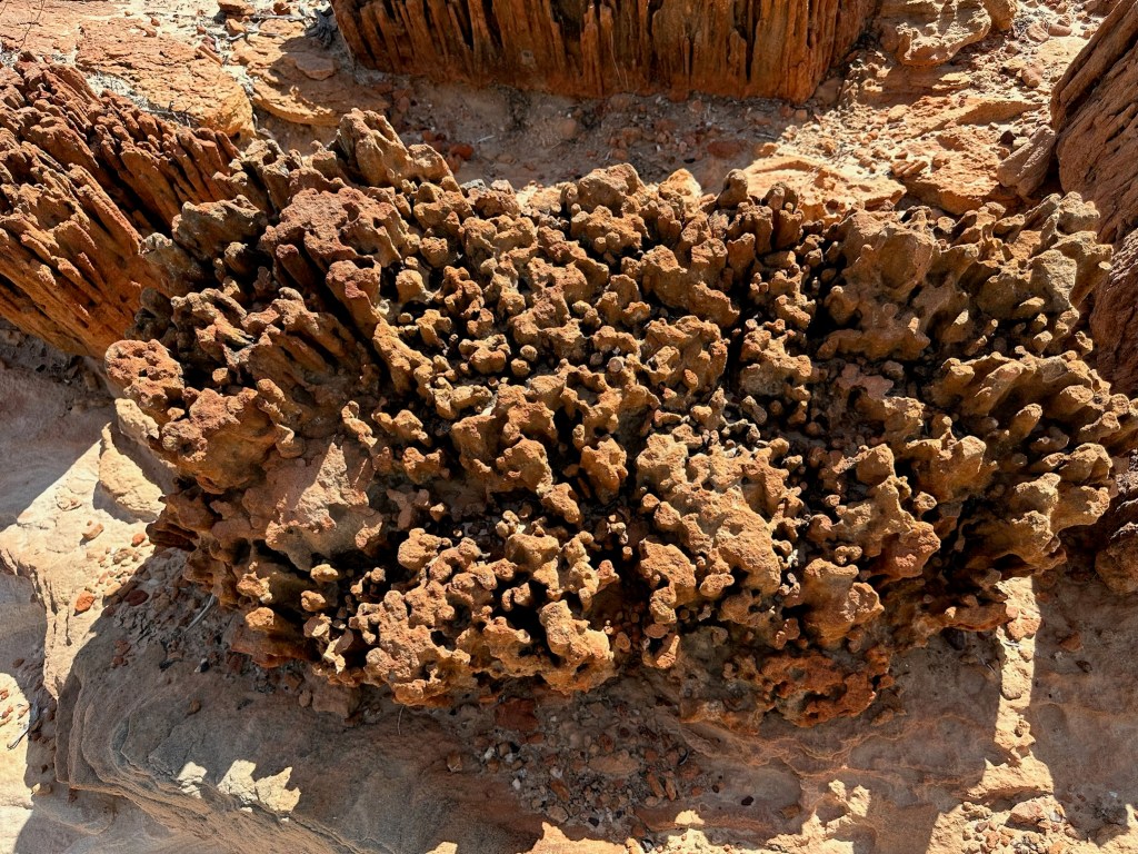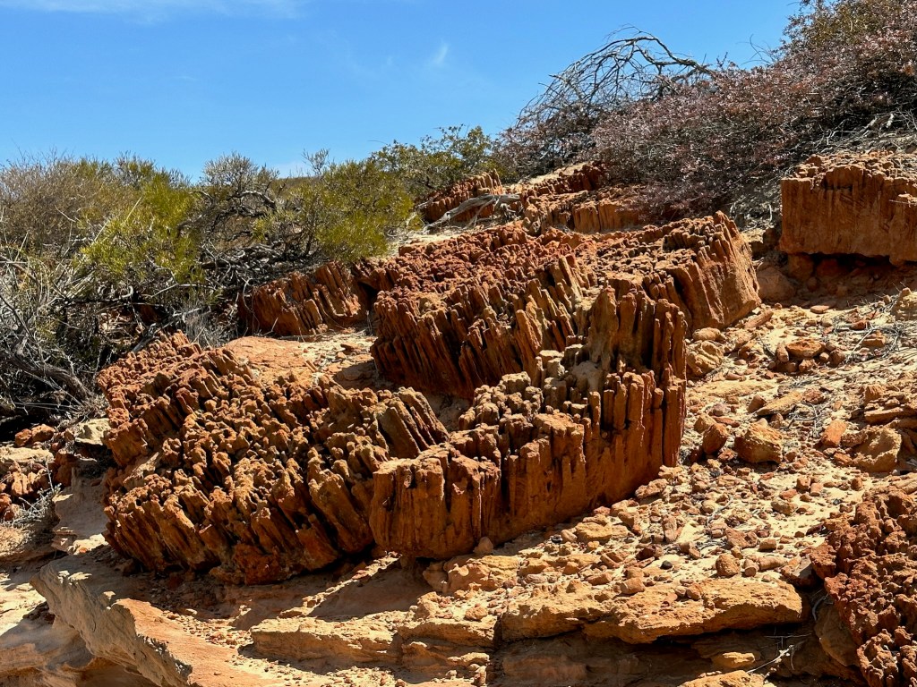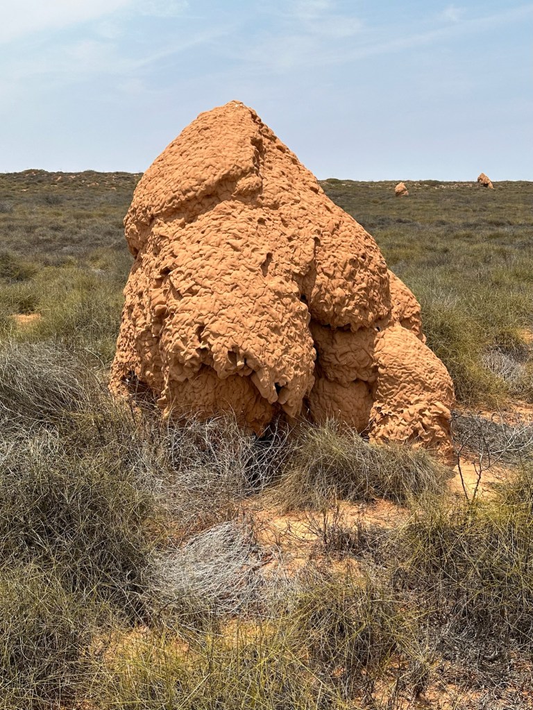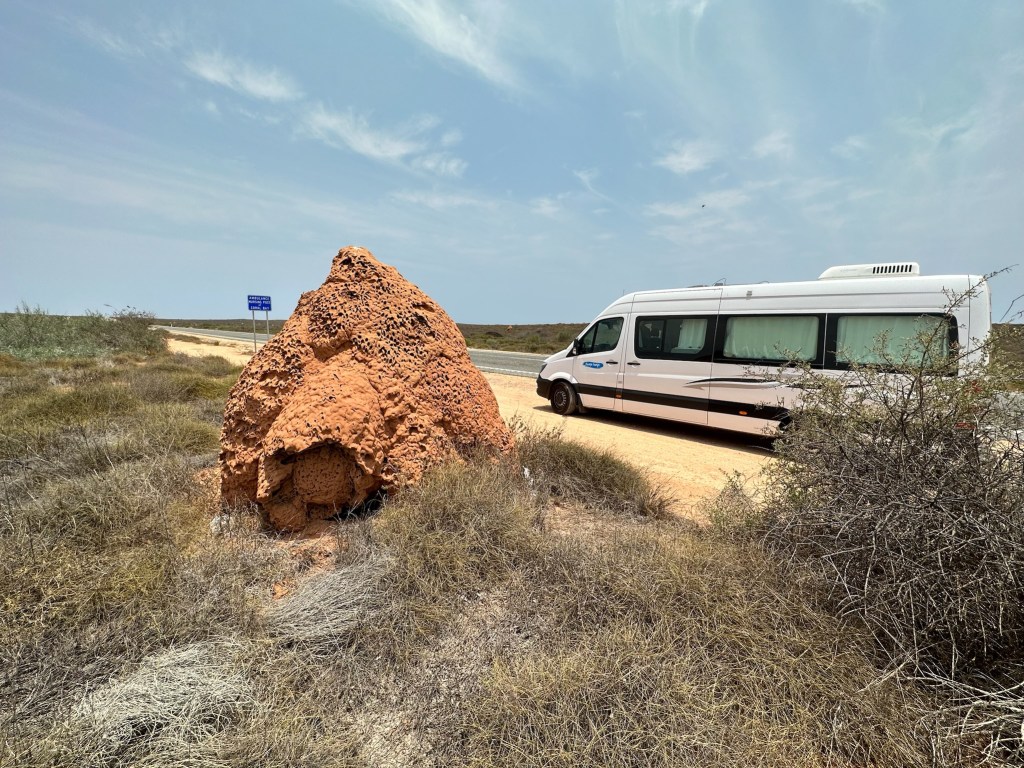 260 km bis Coral Bay ist unser heutiger Plan. Zuerst aber gabs ein währschaftes Frühstück im Roadhouse. Die Fahrt Richtung Südosten ging durch karge Landschaften, wo uns einmal mehr die Termitenburgen, die wir zu Tausenden gesehen haben, beeindruckt haben. Diese sind bis zu zwei Meter hoch und stehen wie Säulen in der Landschaft.