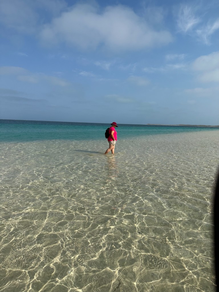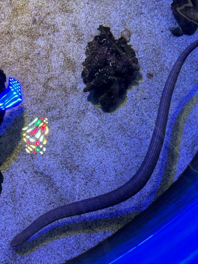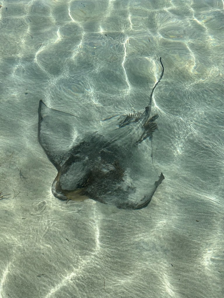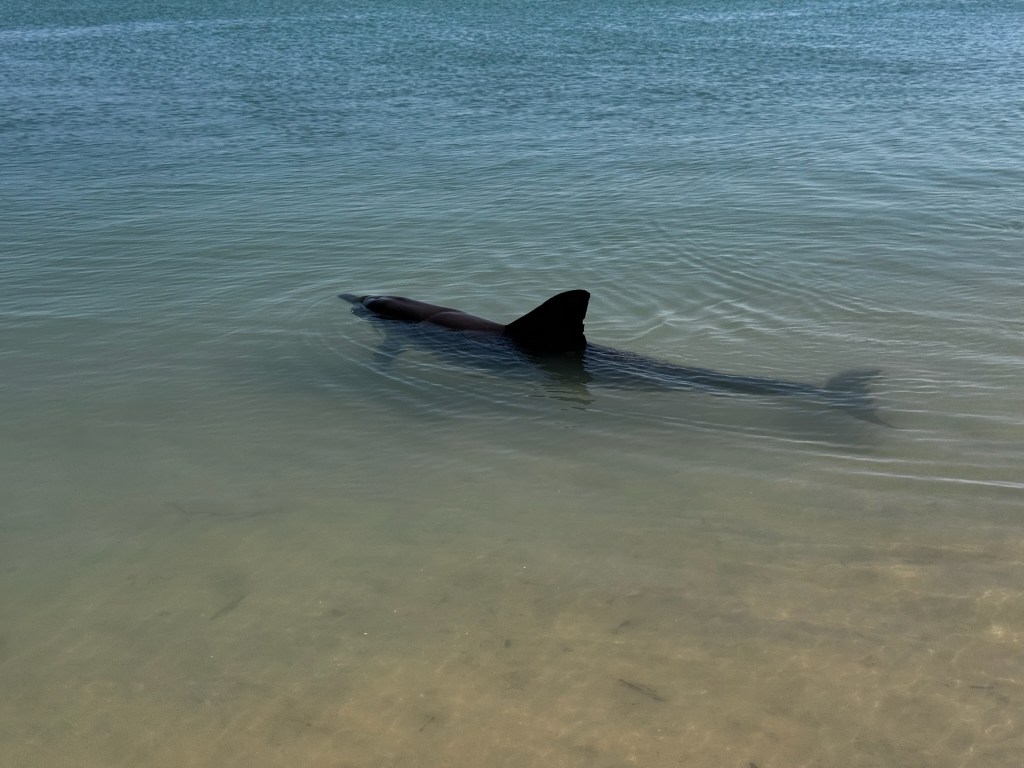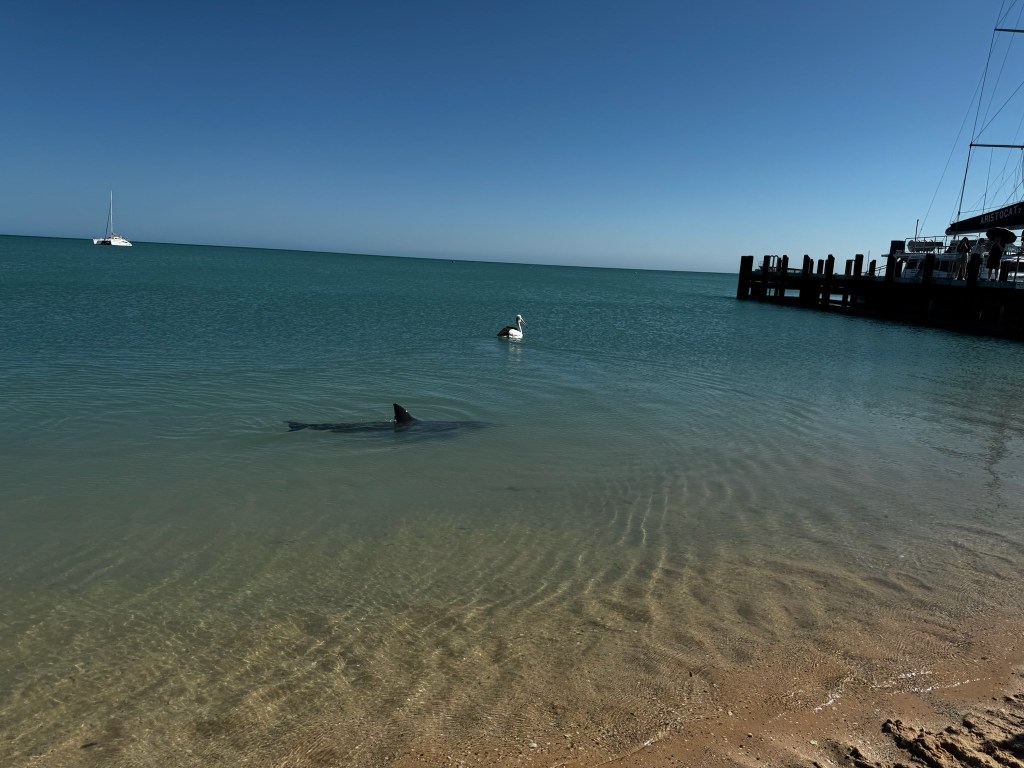 Am Mittwochmorgen sind wir früh aufgestanden um die Fütterung von wilden Delphinen nicht zu verpassen. Die Delphine sind kurz vor 8 aufgetaucht und jeder hat ein Stück Fisch erhalten. Dazu gab es für die Zuschauer viele Infos zum Leben der Delphine. Beim Warten auf die zweite Gruppe Delphine ist ein Shovel Nose Ray bis zum Strand gekommen. Ebenso eine Schildkröte und dann ist noch eine sehr giftige Wasserschlange wenige Meter vor uns durchgeschwommen – zum Glück wussten wir noch nicht, wie giftig die gewesen wäre, sonst hätte ich das Wasser (wir standen zwar nur am Rand) sofort verlassen.