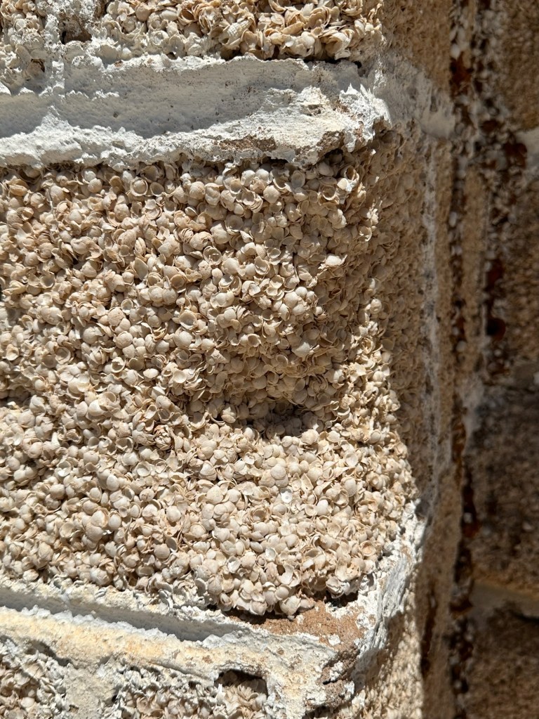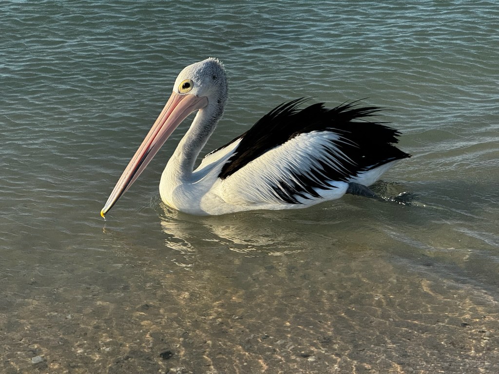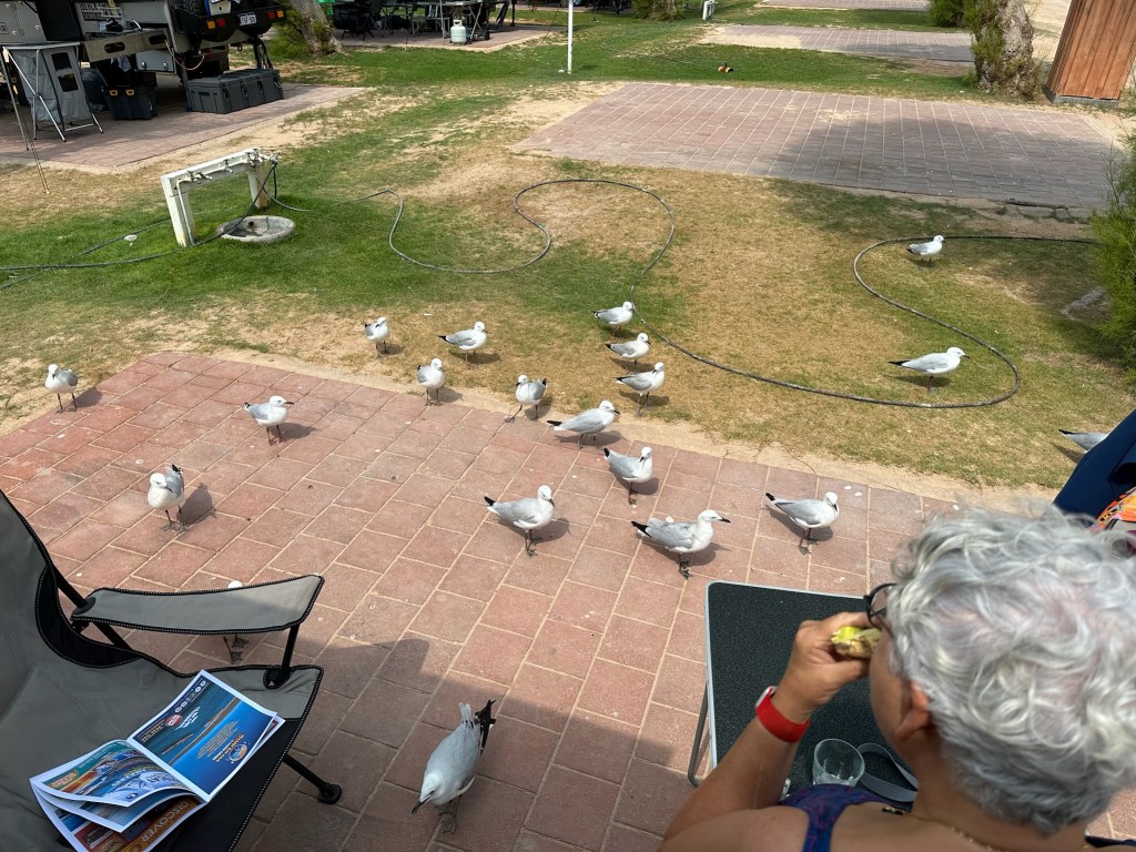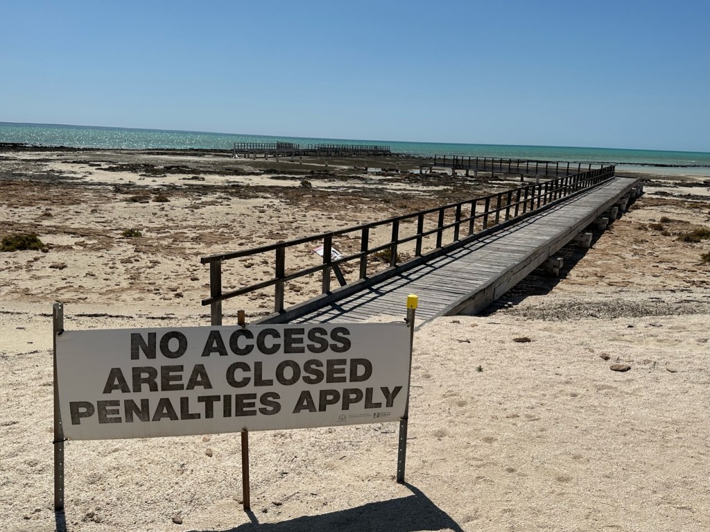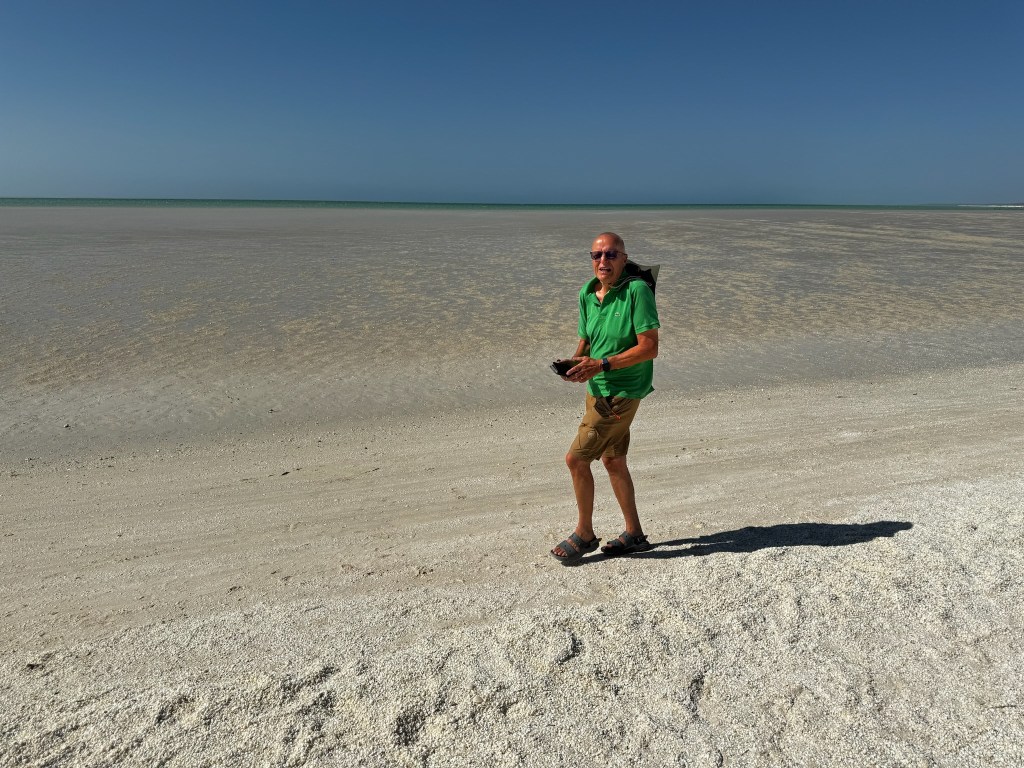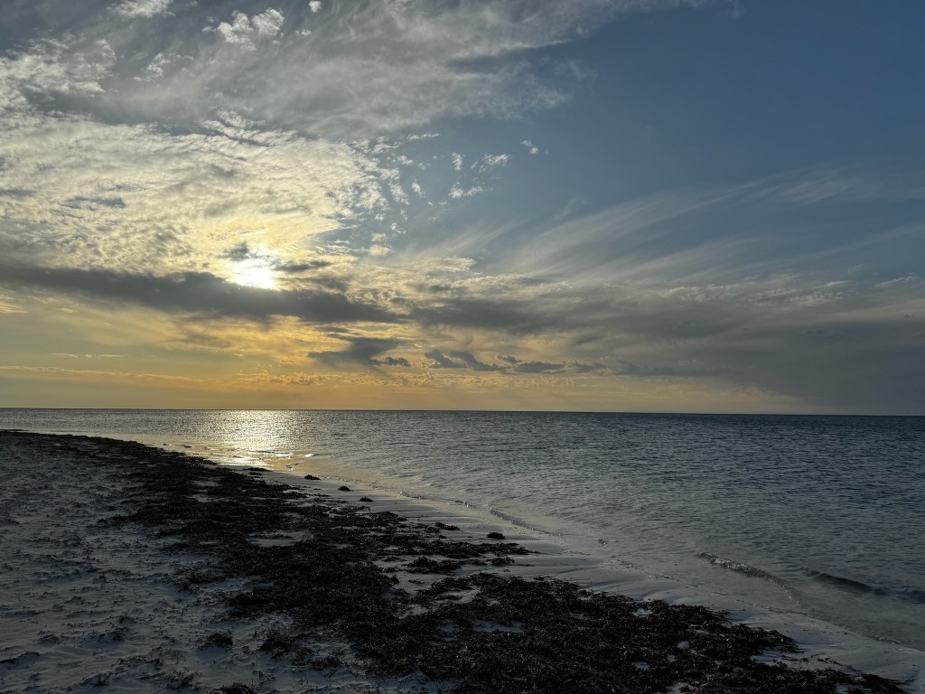 Ein Besuch der Shark Bay hat uns gereizt und so haben wir uns am Dienstag rechtzeitig auf den Weg nach Monkey Mia gemacht. Unterwegs haben wir einen Halt bei den Stromatolites gemacht. Leider konnten wir nur die Infotafeln lesen, weil der Steg zu den Stromatolites beim letzten Zyklon zerstört wurde und darum eine Besichtigung von Nahem zur Zeit nicht möglich ist. Der nächste Halt war am Shell Beach, einem Strand, der nicht aus Sand, sondern aus Abermillionen kleinen, weissen Muscheln besteht. Die Muschelschicht ist bis 10 Meter tief und so dicht gepresst, dass daraus sogar Ziegel für den Bau von Häusern gewonnen wurden. Kurz vor dem Eindunkeln sind wir in Monkey Mia angekommen und dort haben wir Sabine und Richard nochmals getroffen. Am Abend ist ein starker und kalter Wind aufgekommen, sodass ich die Jacke auspacken musste.