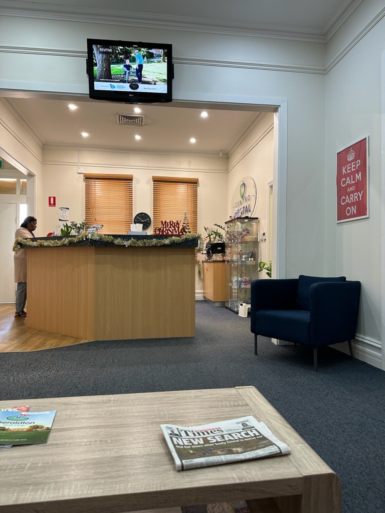 Auf dem Weg nach Geraldton legten wir in Northampton einen kurzen Halt ein um Cremeschnitten zu kaufen – dort bekommt man angeblich die Besten in ganz Australien. Nach dem Zahnarztbesuch haben sie dann auch wunderbar geschmeckt, auch wenn ich noch eine taube rechte Seite hatte und nur links kauen durfte. Apropos Zahnbehandlung: Diese fand in einem gefälligen alten Gebäude statt. Der Behandlungsstuhl war ausgesprochen bequem, über mir hing ein riesiger Bildschirm in welchem leider v.a. Werbung ohne Ton lief. Der Zahnarzt war ein Inder, ebenso die Assistentin. Die Behandlung war sehr feinfühlig und absolut schmerzfrei. Ungewohnt war einzig, dass ich für das Spülen vom Behandlungsstuhl aufstehen, zum Lavabo gehen und wieder zurück auf den Stuhl musste. Erleichtert war ich nach dem Flicken meines Zahn schon. Und das Beste: Die 40 minütige Behandlung kostete nur 260 A$, also etwa 150 Franken.