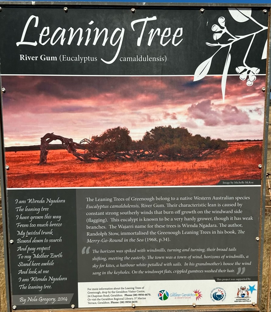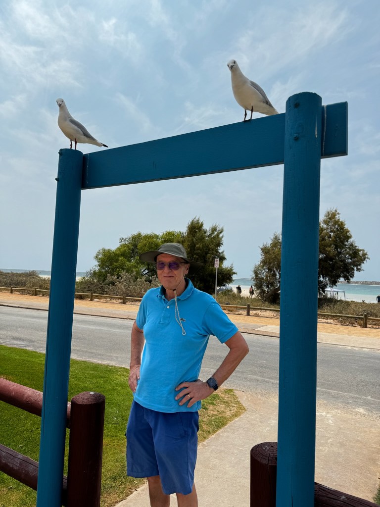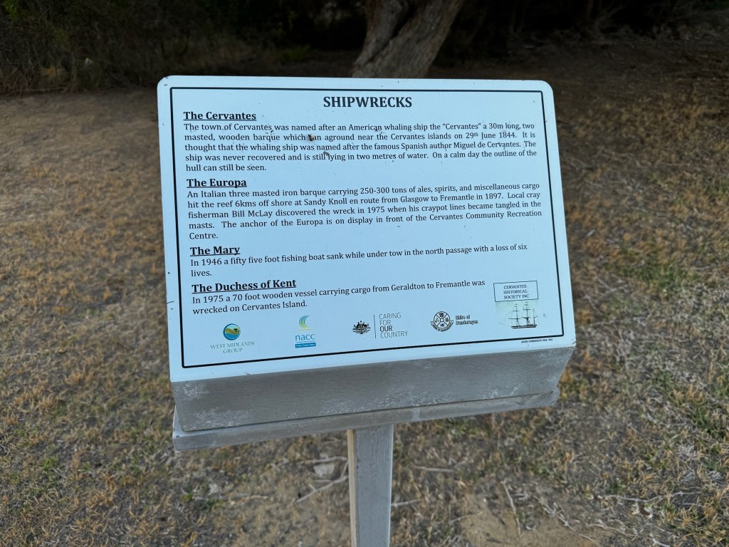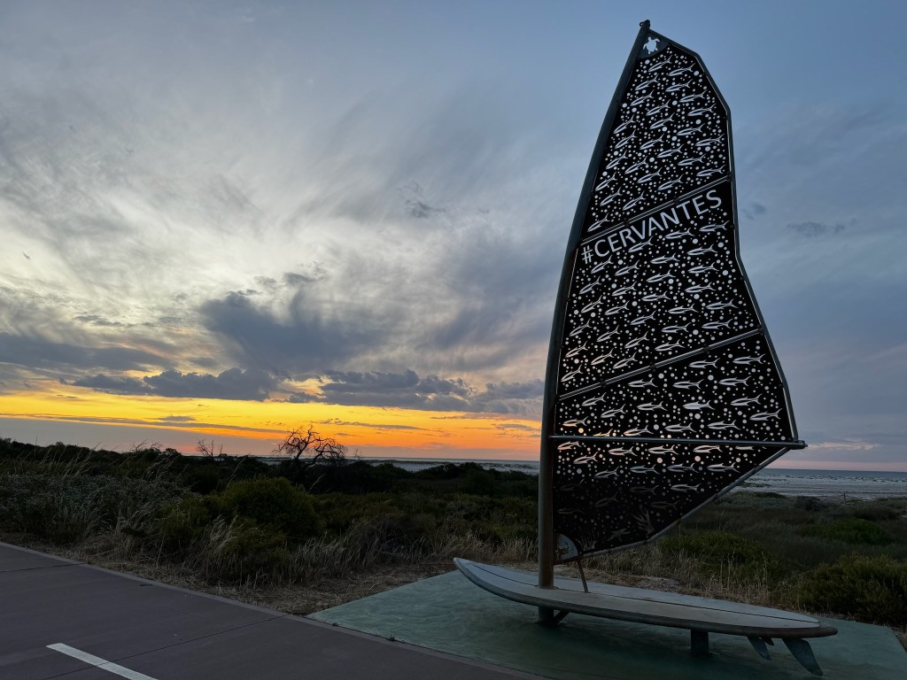 Wir bleiben einen weiteren Tag in Geraldton. Carole verabredete sich zu einer Fusspflege und ich nutzte die Zeit für einen Rundgang. Während zwei Stunden spazierte ich entlang eines beschilderten Weges, der mich an vielen geschichtlich interessanten Orten von Geraldton vorbei führte. Diese waren mit informativen Schildern beschrieben und so bekam ich auch vieles von der Geschichte von Geralton mit. Später traf ich Carole am Strand. Von einer nahen Bar hörten wir gute Livemusik. Wir entschlossen uns zu einem Imbiss und einem Glas Wein in der Bar. Am Schluss blieben wir für rund 2 1/2 Stunden sitzen. Danach marschierten wir zu unserem Zeltplatz, wo wir gerade rechtzeitig vor einem Gewitter ankamen.