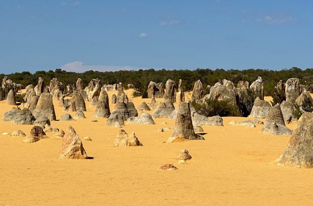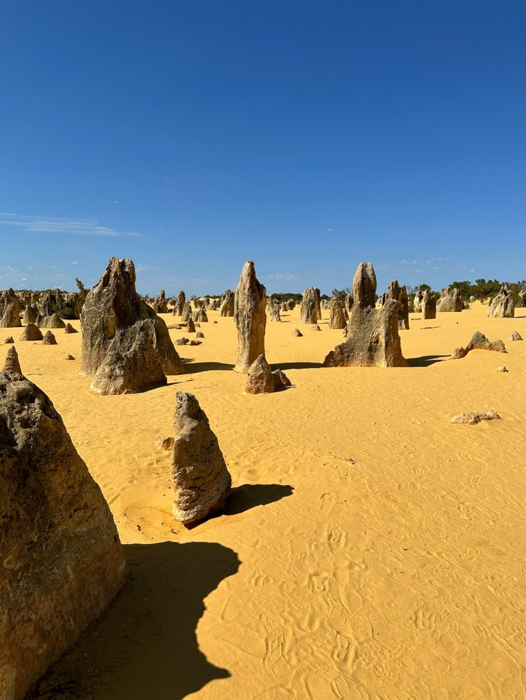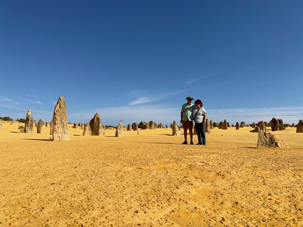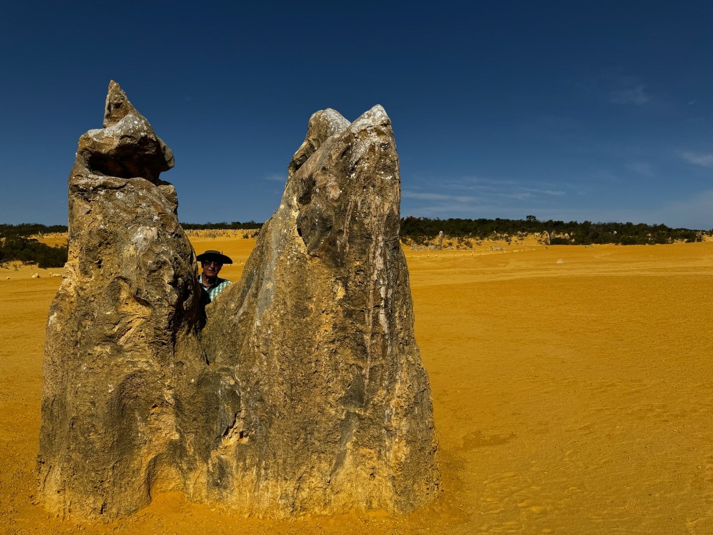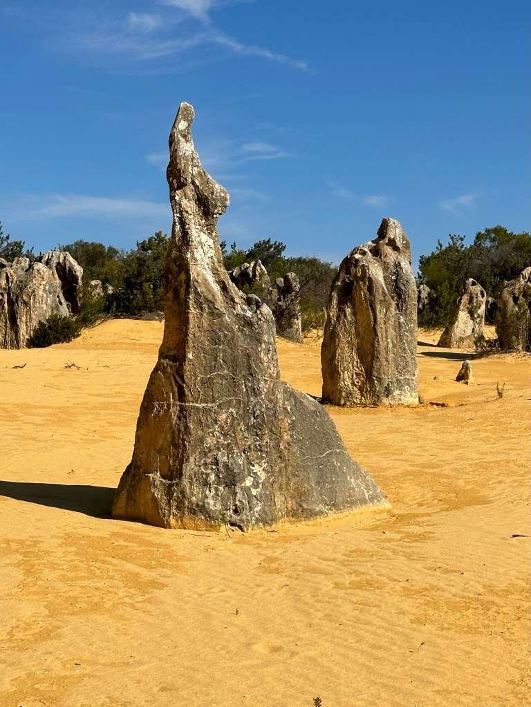 Auf dem Weg nach Cervantes (klicken) haben wir in Greenough Leaning Trees (horizontal wachsende Bäume) gesehen. Im familiären kleinen Zoo ein paar Kilometer weiter haben wir den nächsten Halt eingelegt und verschiedene Tiere (Emus, Kängurus etc) gefüttert und bei der Fütterung eines Krokodils zugesehen. In Cervantes sind wir nach einer langen Fahrt auf einer eher engen und kurvigen Strasse durch die Dünen um 13.15 Uhr angekommen, gerade rechtzeitig, um in der Lobster Shack einen grossen Lobster zu verspeisen. Anschliessend haben wir unseren Platz im Camping bezogen und sind dann gleich weiter zu den Pinnacles. Was für einen spektakulären Anblick diese einmalige Landschaft bot! Zurück im Camping haben wir dem Meer entlang Richtung Thirsty Point einen grösseren Spaziergang gemacht und ein Bier genossen. Nachtessen liessen wir nach dem feinen Lobster sausen – Dessert natürlich nicht; ich ass die Stange Nougat auf, welche mich letzte Woche einen halben Zahn gekostet hatte.