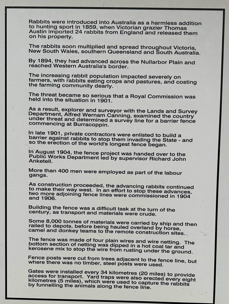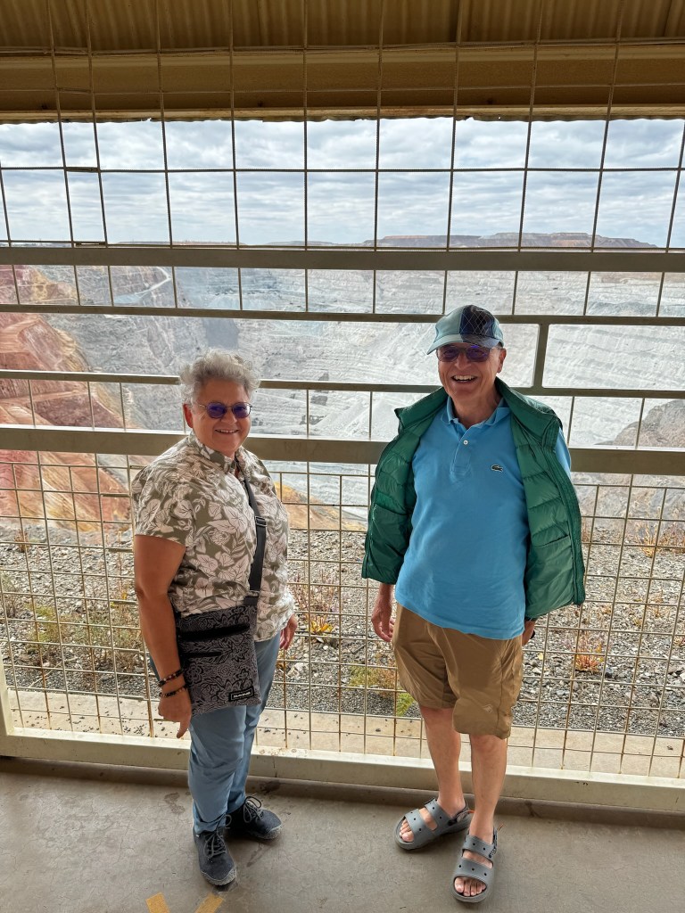 Der Campingplatz in Narembeen war ausgesprochen sauber – trotzdem waren wir die einzigen Gäste, kein Wunder, waren wir doch abseits der Hauptstrassen unterwegs. Heute Morgen war es kühl und wie gehabt windig. Wir haben daher in der Campingküche gefrühstückt. Bereits um 08.30 Uhr sind wir losgefahren, da wir bis zu unserem heutigen Ziel, der Goldgräberstadt Kalgoorlie 400 km fahren mussten. Unterwegs sahen wir einen kleinen Teil vom längsten Zaun (klicken) der Welt. In Kalgoorlie haben wir als erstes die Super Pit Goldmine von der Aussichtsplattform aus angeschaut. Wow, was für ein Loch! 1,5 km breit, 3,5 km lang und 600 Meter tief. Die riesigen Laster auf der andern Seite des Lochs sehen aus wie Spielzeugautos.