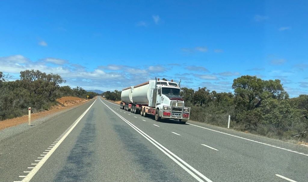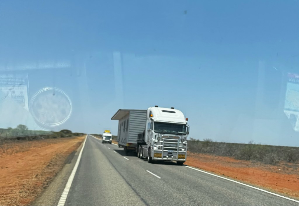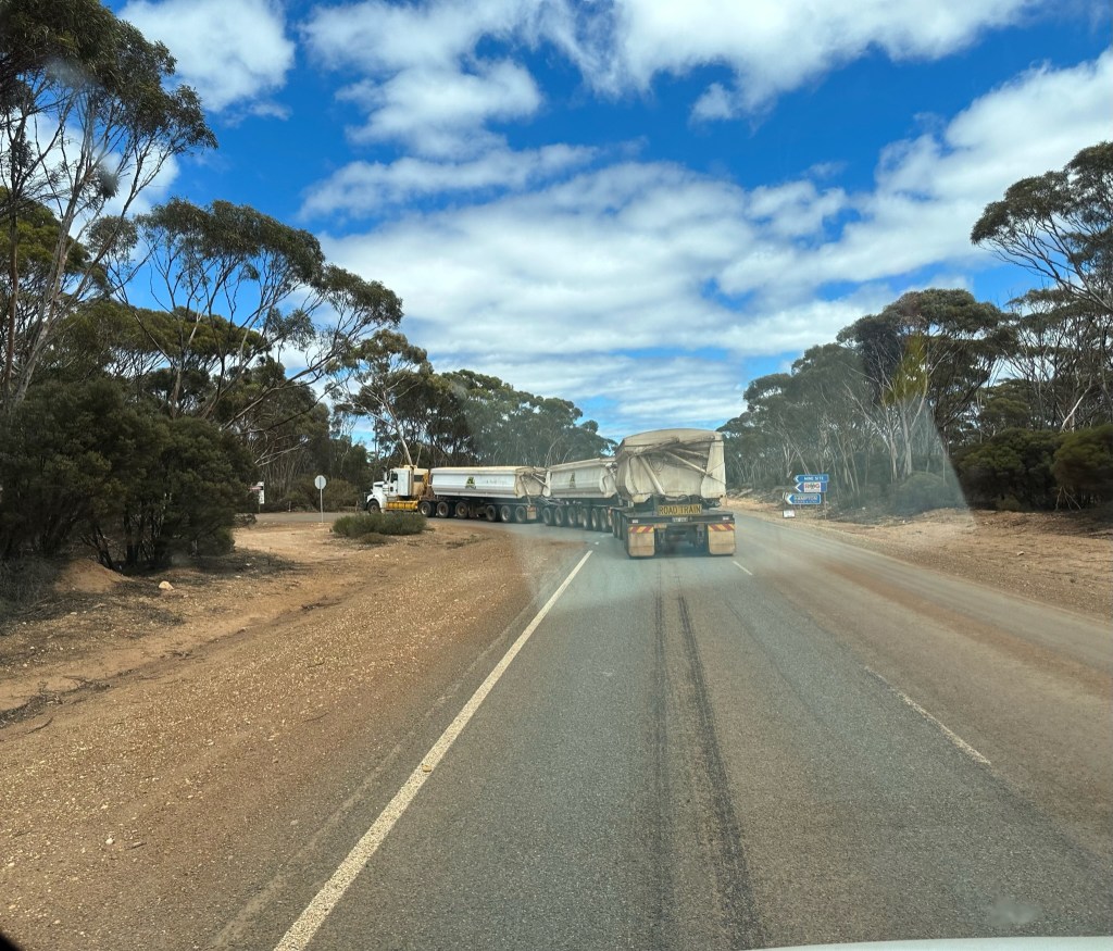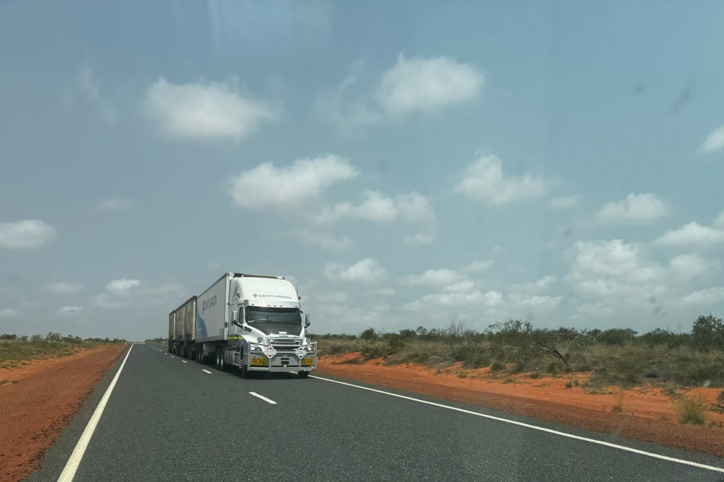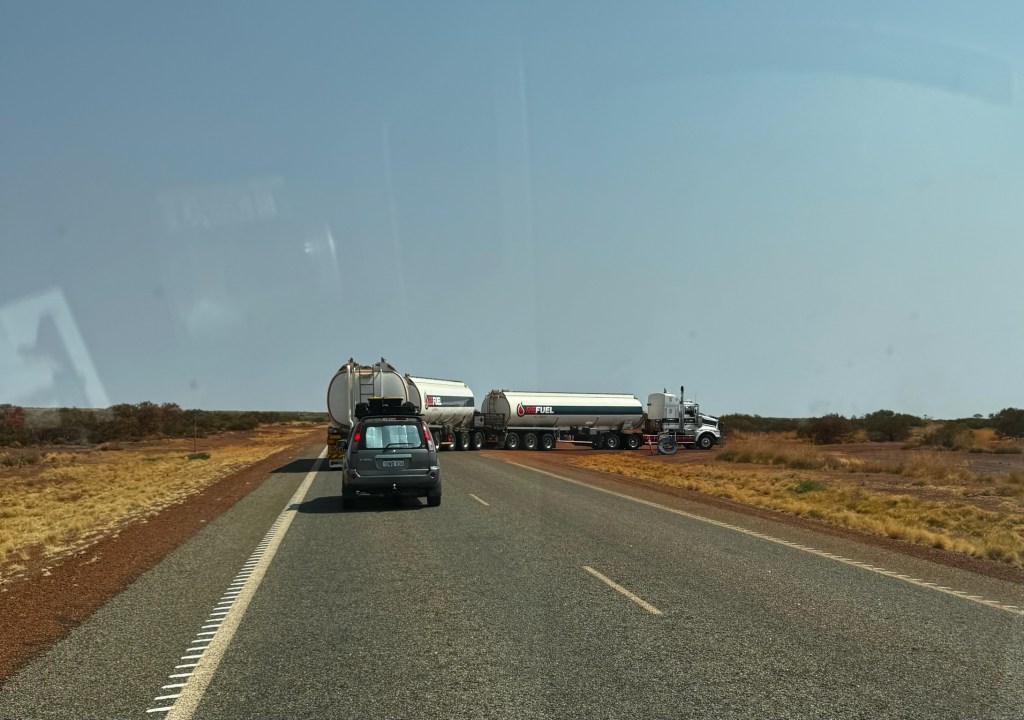– Roadtrains, die bis zu 70 Meter lang sind und drei Anhänger ziehen