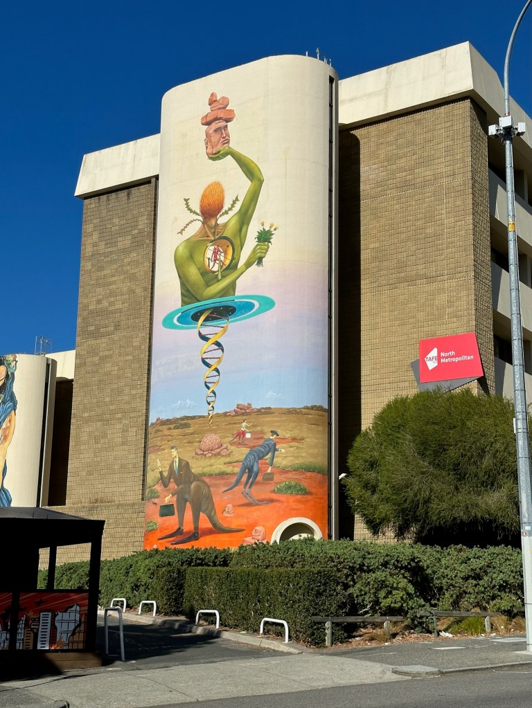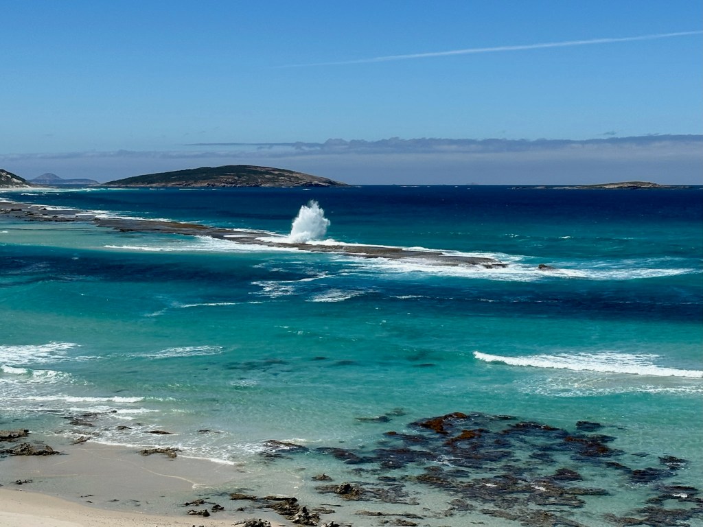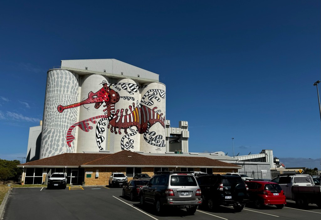 Weitere 250 km haben wir heute mit unserem Camper zurückgelegt. In Hopetoun (toun, nicht town), einem kleinen Ort an der Küste, übernachten wir auf dem Camping. Unterwegs lagen links und rechts wieder viele Weizenfelder, abwechselnd mit Buschland. Nach rund 190 km Fahrt kamen wir nach Ravensthorpe, einem kleinen Städtchen. Die dortigen Getreidesilos sind mit grossen Kunstwerken bemalt. Kurz vor Hopetoun wurde ich um 13 Uhr von der Polizei angehalten und musste ins Röhrchen blasen (13 Uhr am Sonntag!), zum ersten Mail seit ich vor über 50 Jahren den Führerschein bekommen habe. Gut ist gestern Mittag Carole nach dem Degustieren von Gin nicht als Fahrerin in die Kontrolle gekommen.
