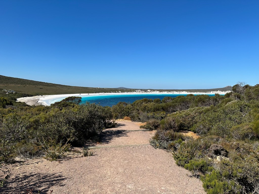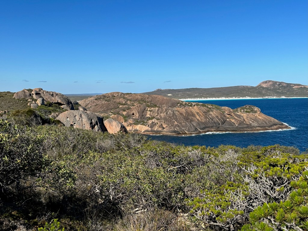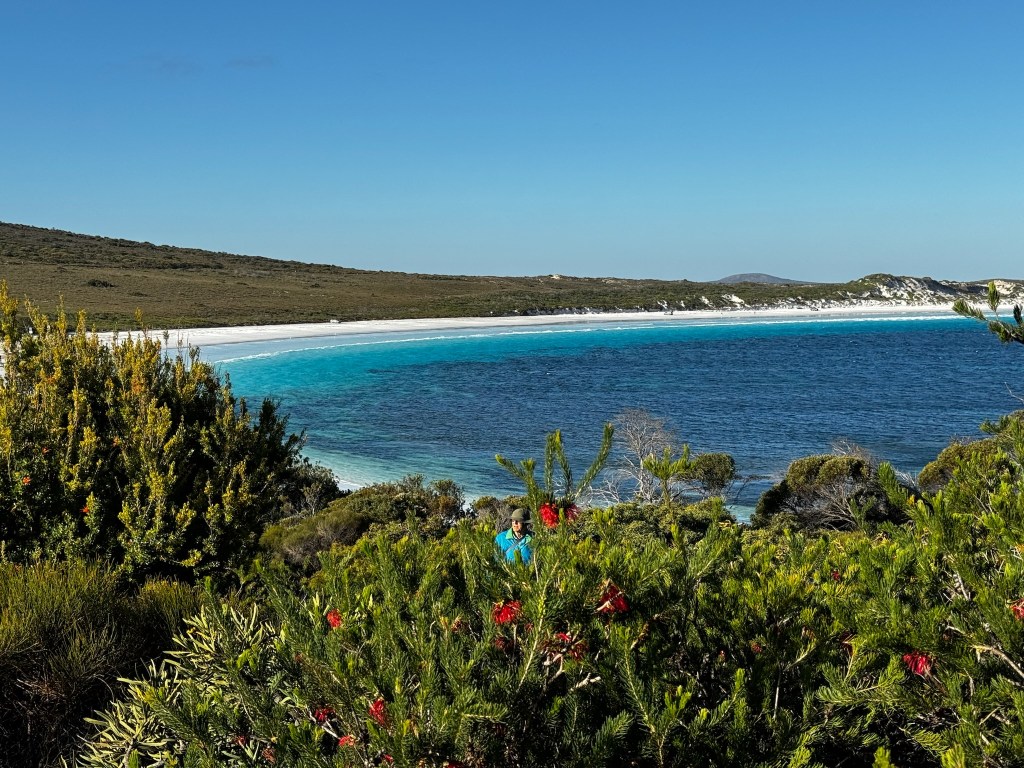 Heute haben wir vormittags eine Rundfahrt (rund 40 km) auf dem Ocean Drive westlich von Esperance gemacht und eine ganze Reihe ausgesprochen schöner Buchten, Strände und Küstenlandschaften gesehen. Von Weitem war auch ein Buschfeuer auszumachen. Nach kurzem Halt in Esperance sind wir am Nachmittag sind wir zur Lucky Bay, rund 80 km östlich von Esperance gelegen, gefahren. Auch diese Bucht war schon fast kitschig schön und die Farben unglaublich intensiv. Es passte, dass ich auf einem Fussweg plötzlich vor einem Känguru mit ihrem Jungen stand. Da uns Wasser und Luft zu kühl fürs Baden war, sind wir von der Lucky Bay nach Thistle Cove und zurück gewandert. Es waren pro Weg zwar nur gut 2 km, allerdings führte der Weg über einen Hügelzug und er war landschaftlich so abwechslungsreich, dass wir immer wieder Halt machen und Fotos schiessen mussten. Die Wanderung dauerte daher fast zwei Stunden. Zurück in Esperance gab am Abend eine Pizza.
