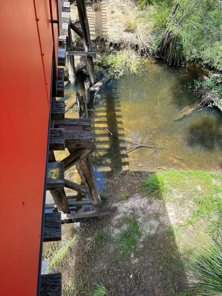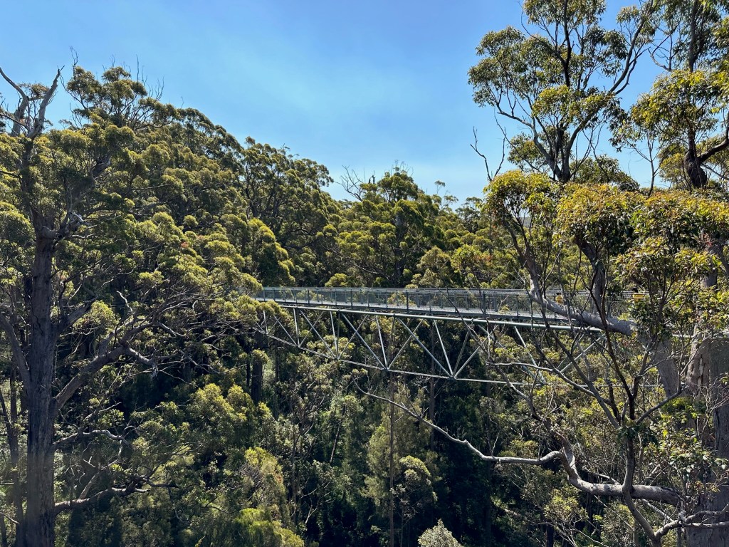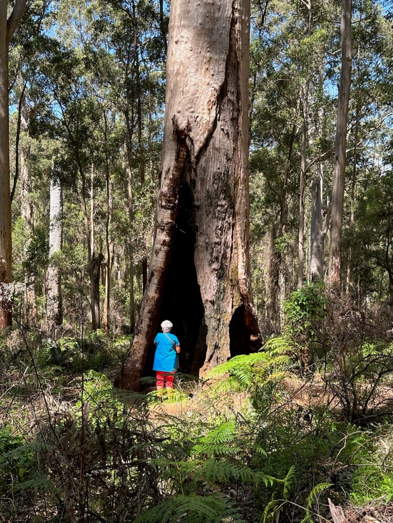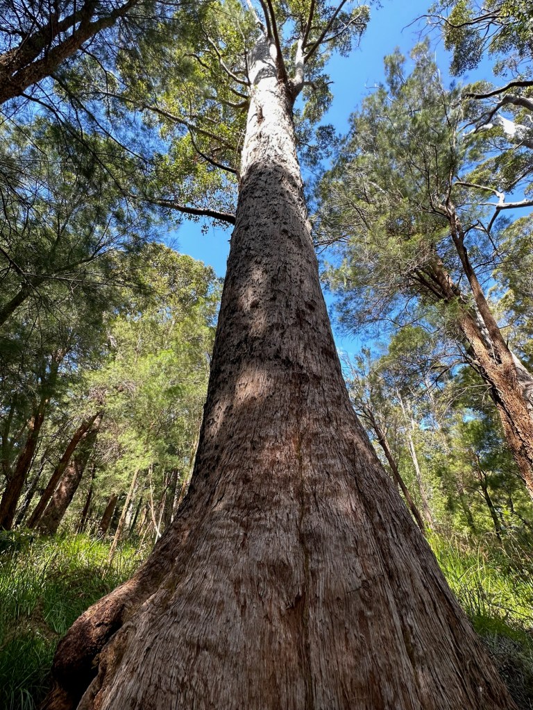 Nach der Rückkehr mit dem Tram sind wir zu Gloucester Tree gefahren. Dies ist ein 72 Meter hoher Karribaum bei dem sich auf 61 Meter Höhe ein Feuerausguck befindet. Auf einer recht abenteuerlichen „Treppe“, gebaut aus ca. zwei Meter langen Schrauben, die in den Baum getrieben wurden, konnte man früher wie auf einer Wendeltreppe nach oben steigen. Schwindelfreiheit und etwas Mut natürlich vorausgesetzt. Mein Mut wurde glücklicherweise nicht auf die Probe gestellt, da die Treppe geschlossen war.