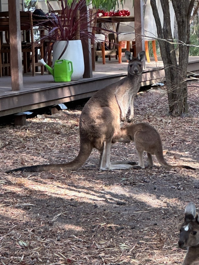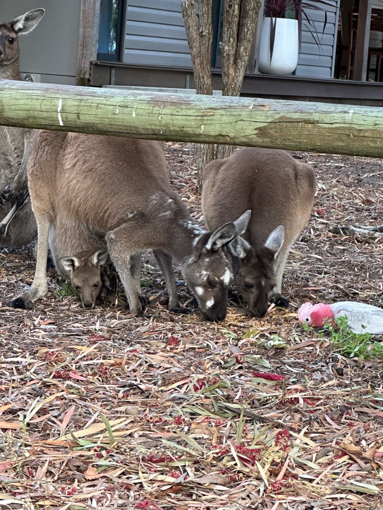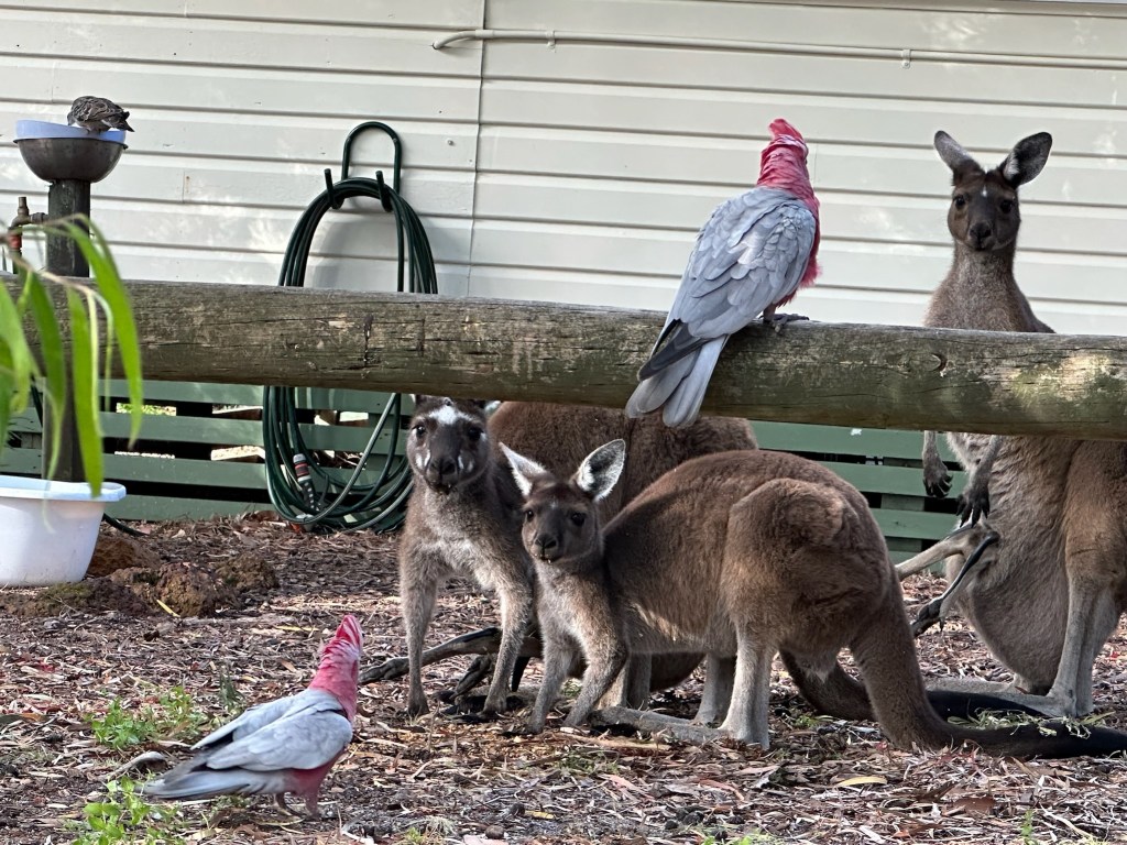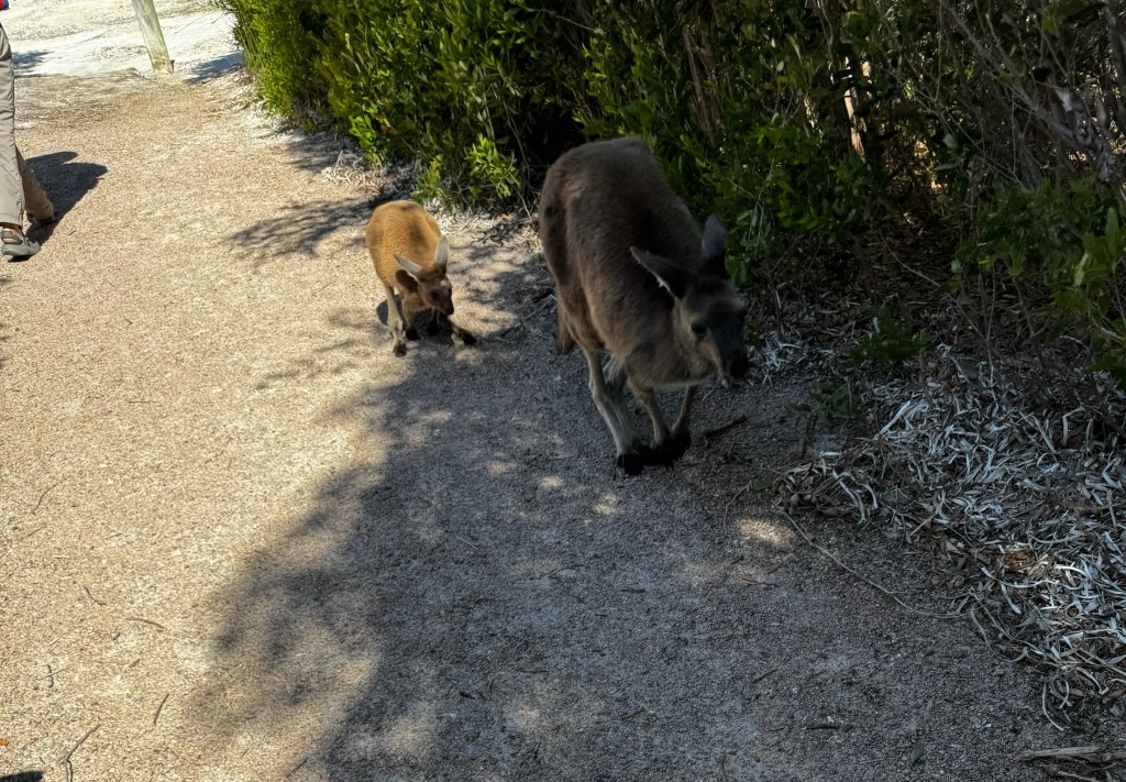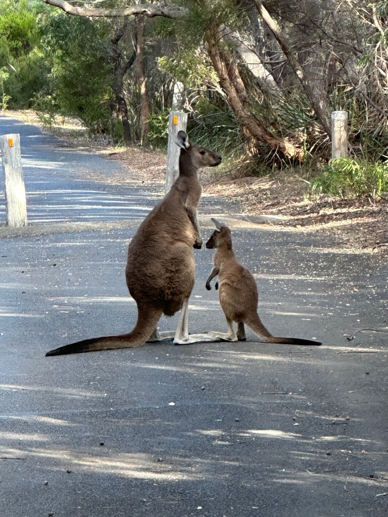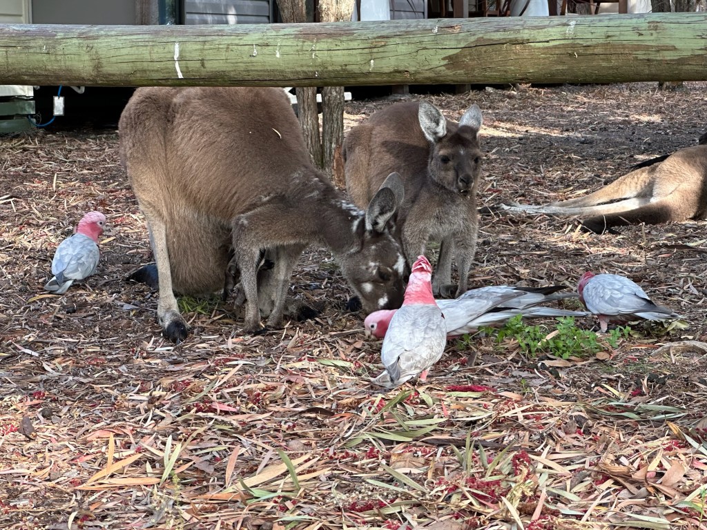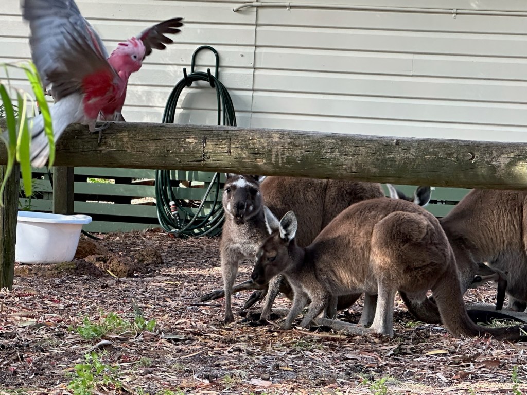 Wir bleiben zwei Nächte in Walpole. Den heutigen Tag haben wir für eine geführte Bootsfahrt auf dem Walpole and Normalup Inlets Marine Park gemacht. Der Ausflug war – für Carole – sehr informativ. Für mich etwas weniger, da der Führer während 2 1/2 Stunden praktisch nonstop wahnsinnig schnell gesprochen hat. Zusammen mit meinen Hörproblemen und dem Motorenlärm war ich überfordert. Carole hat mir dann Einiges übersetzt. Am späteren Nachmittag haben wir einen Spaziergang in der Umgebung unseres Campings gemacht. Auf dem Heimweg sahen wir paar Känguru-Mütter mit ihren Jungen. Sie haben sich im Garten des kleinen Bürogebäudes unseres Campings aufgehalten und zusammen mit einigen Galahs Nahrung gesucht.