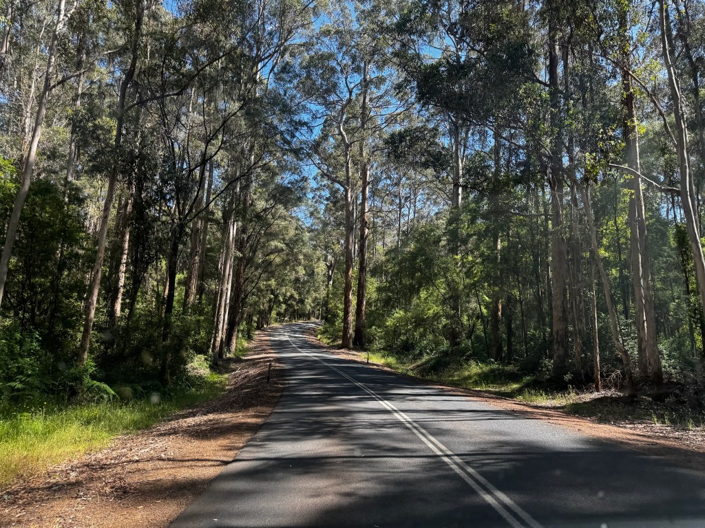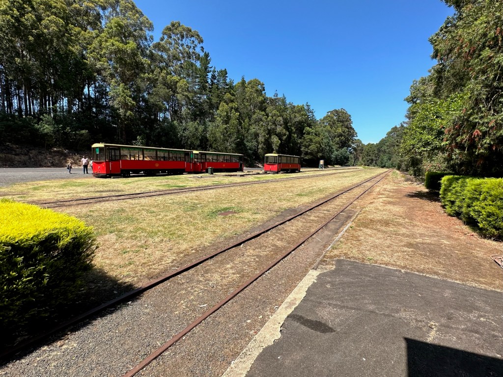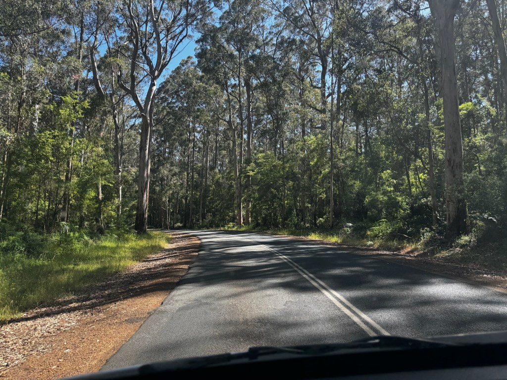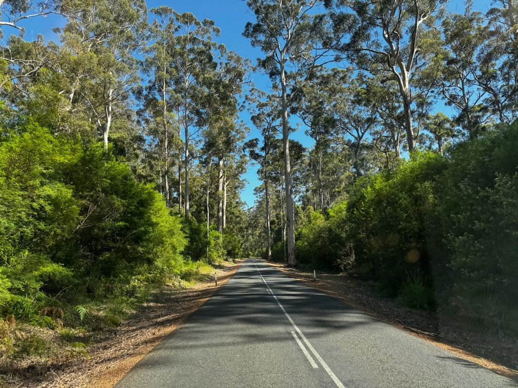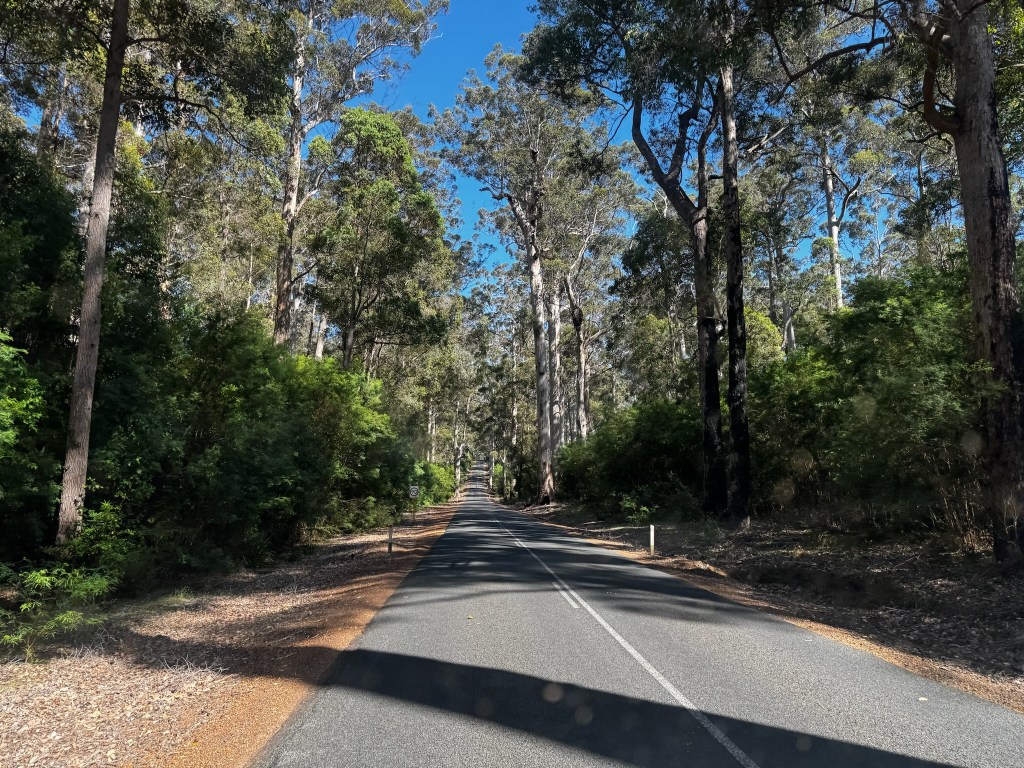 Unsere heutige Fahrt ging von Walpole aus nach Pemberton. Praktisch auf dem ganzen Weg sind wir durch Wälder mit riesigen Karribäumen (klicken) gefahren. Da die Strassen eng waren und Licht un d Schatten sich abwechselten, war die Fahrt eher heikel. Zum Glück hatte es nicht viel Verkehr. In Pemberton angekommen sind wir mit dem „Tram“ zu einige Stromkaskaden gefahren. Beim Tram handelte es sich um ein altes Bähnchen, das für Touristen aufgemöbelt wurde und das auf den Geleisen einer stillgelegten Holztransportbahn fuhr. Beim Überqueren der nur wenig befahrenen Hauptstrasse musste das Tram anhalten und der Tramführer musste an einem Schaltkasten das Senken der Barriere verlassen und nach dem Überqueren bei einem zweiten Kasten die Barriere wieder hochfahren lassen. Wie er selber gestand, hat er dies einmal vergessen und so entstand auf der Strasse offenbar ein Stau.