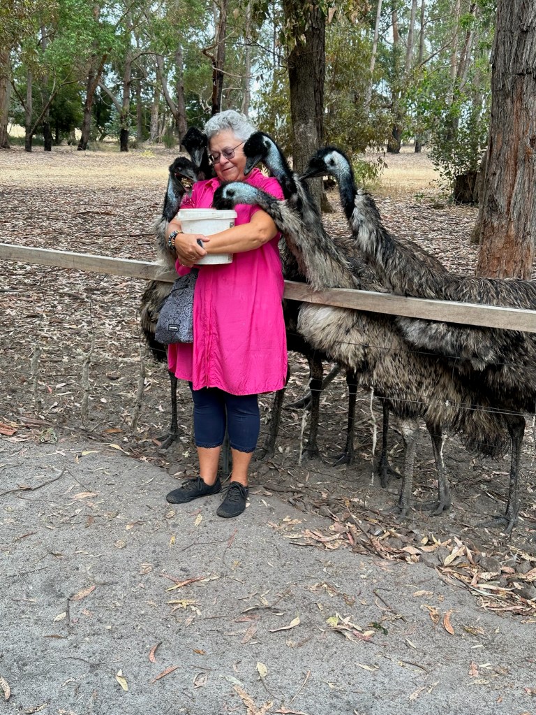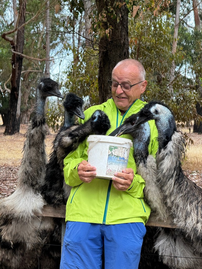 Den Camper lassen wir heute stehen. Wir haben uns für eine ganztägige Tour „All about Margaret River“ angemeldet. Es war eine kleine Gruppe mit nur 7 Teilnehmenden (inkl. uns). Zunächst besuchten wir die Hideaway Farm, wo wir Alpakas und Emus fütterten (siehe Fotos). Danach bekamen wir in einem Stall unser Frühstück bestehend aus Kafi, Tee und Scons. Der nächste Halt war bei einer Schoggifabrik, mmmhhh. Noch vor dem Mittagessen besuchten wir Ashbrooke Estate, ein Weinbaubetrieb, in welchem wir in gut einer halben Stunde einen Rosé, 4 Weissweine, drei Rotweine und einen Süsswein degustierten. Zum Mittagessen waren wir im ländlichen Betrieb „Oli Bello“. Hier konnten wir noch vor dem Essen viele verschiedene Olivenöle, Gewürze, Saucen, etc. probieren. Nach dem Mittagessen besuchten wir zwei weitere Weinbaubetriebe, schliesslich ist Margaret River für gute Weine bekannt. Wer vorher gedacht hat, dass in einer halben Stunde kaum mehr als 9 Weine degustiert werden können, hat sich getäuscht. In Brown Hill Estate haben wir es auf 11 Weine gebracht (4 Weisse, 1 Rosé, 5 Rotweine und 1 Liqueur Muscat). Den Vogel abgeschossen hat der Weinbaubetrieb Redgate: Alle 2 Minuten kam ein neuer Wein zum Degustieren auf den Tisch. Startend mit einem weissen Schaumwein, weiter über einen Rosé, 6 Weissweine, einen weissen Dessertwein und 5 Rotweine ging’s zum Schluss über zu einem roten Schaumwein und als Abschluss noch zu einem roten Dessertwein. Als qualifizierter (?) Säufer habe ich alle 36 Weine gekostet und keinen Tropfen weggeleert 😇😋🙃