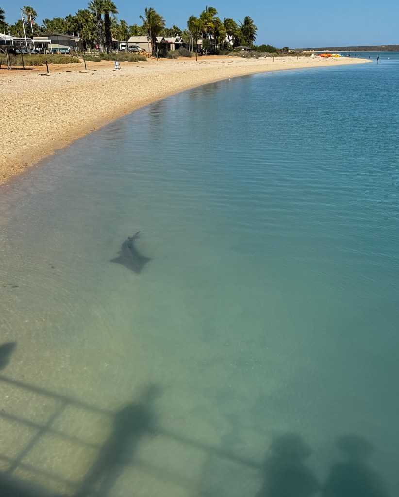 Anschliessend haben wir in Denham gefrühstückt, für mich gabs unter anderem eine riesige Cremeschnitte, die nota bene nicht schlecht war. Nach ausgiebigem Spaziergang dem Meer entlang machten wir uns auf Weg Richtung Overlander Roadhouse, wo wir auf dem Camping übernachten werden. Unterwegs haben wir im Ocean Park Aquarium bei einer Führung mit Fütterung von Haien teilgenommen. An der Führung wurde nebst vielen Meeresbewohnern auch eine Seeschlange gezeigt und wir erfuhren, dass ein Biss tödlich endet.