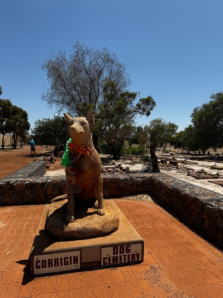 Für uns unvorstellbar, wie gross die Weizenkammer in Westaustralien ist. Heute sind wir von York via Hyden nach Narembeen rund 400 km gefahren und waren immer von derartigen Feldern umgeben. Unterwegs haben wir bei einem (kein Witz) Hundefriedhof Halt gemacht und den Wave Rock (klicken) besichtigt. Da wir frühzeitig in Narembeen angekommen und die Temperaturen mit 31 Grad und etwas Wind angenehm sind, haben wir eine Wäsche gestartet und wir gehen nach dem Trocknen in eine örtliche Bar zum Nachtessen. So muss Carole für einmal nicht kochen und ich nicht abwaschen.