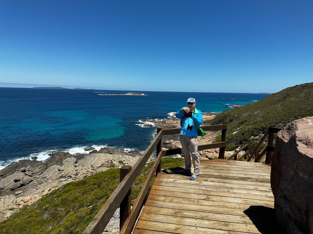 Von Dunsborough aus sind wir zum Cape Naturaliste Lighthouse gefahren. Der Leuchtturm war der letzte Leuchtturm auf dem Festland von Australien, der von einem vor Ort wohnenden Leuchtturmwächter betreut wurde – bis 1996. Seither läuft auch hier der Betrieb vollautomatisch. Auf dem Cape to Cape Walk Track sind wir zum wir Sugarloaf Rock ein weiteres Stück gewandert und haben die Küstenlandschaft bewundert. Dieser erste Teil vom Cape to Cape Walk Track ist sogar rollstuhlgängig. Der Sugarloaf Rock ist die südlichste Stelle, an der der Rotschwanz Tropik Vogel nistet. An diesem Küstenabschnitt spielen oft Delphine mit den Wellen – von weitem haben wir eine Gruppe beobachten können. Auf dem Rückweg zum Camping haben wir am Sandstrand an der Eagle Bay Halt gemacht – für ein Bad im Meer war es uns aber zu kalt (21°) und zu windig.