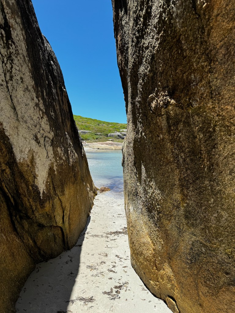 Gracetown war unser heutiges Ziel. Vorgängig haben wir in Margaret River eine Fudge Factory besucht – ich habe mich mit einem halben Kilo Fudge beschenkt, Carole wird natürlich auch etwas davon bekommen. Das Meer vor Gracetown ist für seine fürs Surfen geeigneten Wellen bekannt und hier finden auch regelmässig Surfwettbewerbe statt. Am Ufer hat es überhängende Cliffs – es wird stets davon abgeraten, sich darunter zu begeben. Vor wenigen Jahren haben Zuschauer am Surfwettbewerb unter einem Cliff zugeschaut. Dieses ist überraschend abgebrochen und hat 10 Personen unter sich begraben. 9 davon haben es nicht überlebt! Der Cape to Cape Walk Track geht durch Gracetown. Wir sind ein Stück darauf gewandert und haben dem Tosen des Meeres und dem Wind zugehört und natürlich viel Sonne getankt.