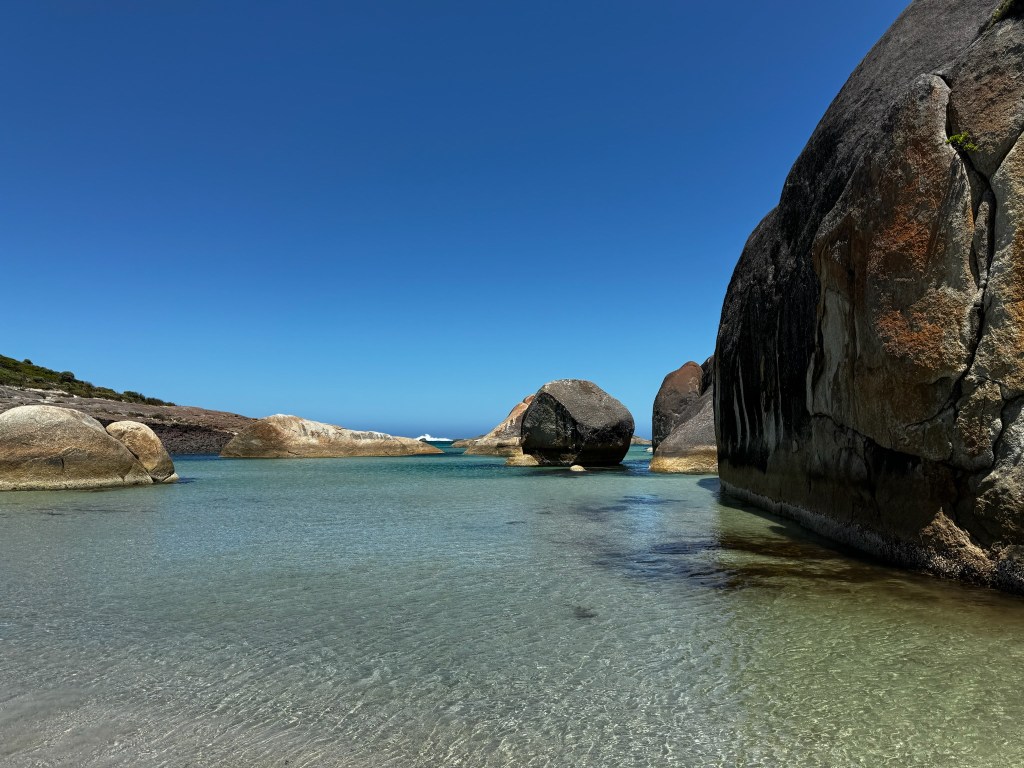 Heute haben wir Albany verlassen und sind nach Walpole gefahren. Unterwegs haben wir in der Nähe des Orts Denmark die Elephant Rocks besucht. Der Zufall wollte es, dass wir am Strand stehend einen Eagle Ray sahen. Im klaren Wasser konnte ich bis auf einen Meter zu ihm hingehen und Fotos machen. Ein weiterer Höhepunkt des heutigen Tages war der Tree Top Walk im Valley of the Giants. In diesem Tal wachsen riesige, einzigartige Bäume – man findet sie nur hier im Süden von Westaustralien.