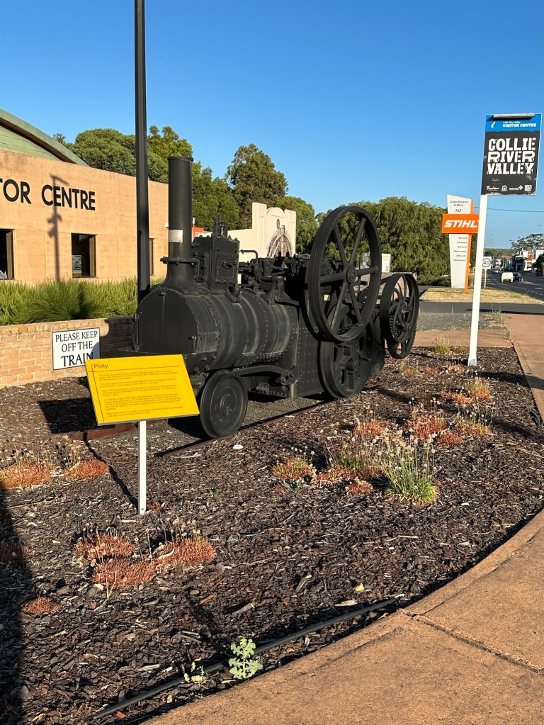 Vom Camping in Dunsborogh aus sind wir heute kreuz und quer durchs Land mit dem Ziel Collie gefahren. Carole hatte auf einem Wegteil über rund 40 km eine enge Strasse mit sehr vielen Kurven zu passieren – da ich eine Erkältung eingefangen habe verzichtete ich aufs Fahren. Um 14 Uhr sind wir in Collie angekommen, haben Kleider gewaschen und sind am frühen Abend ins Städtchen gelaufen. Nach der Besichtigung einiger alter Dampfloks haben wir In einem Pub ein feines Nachtessen genossen.
