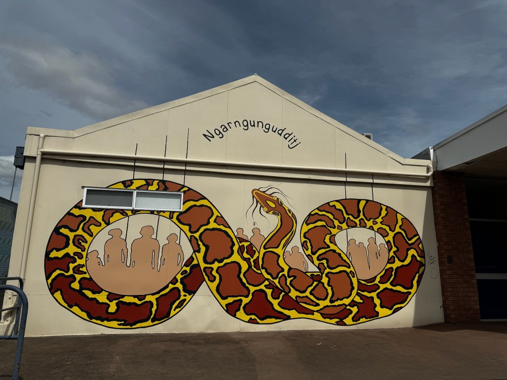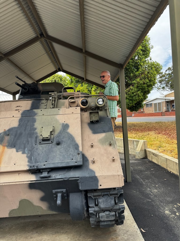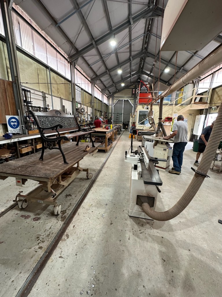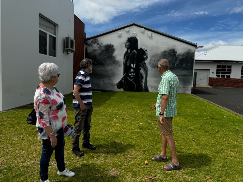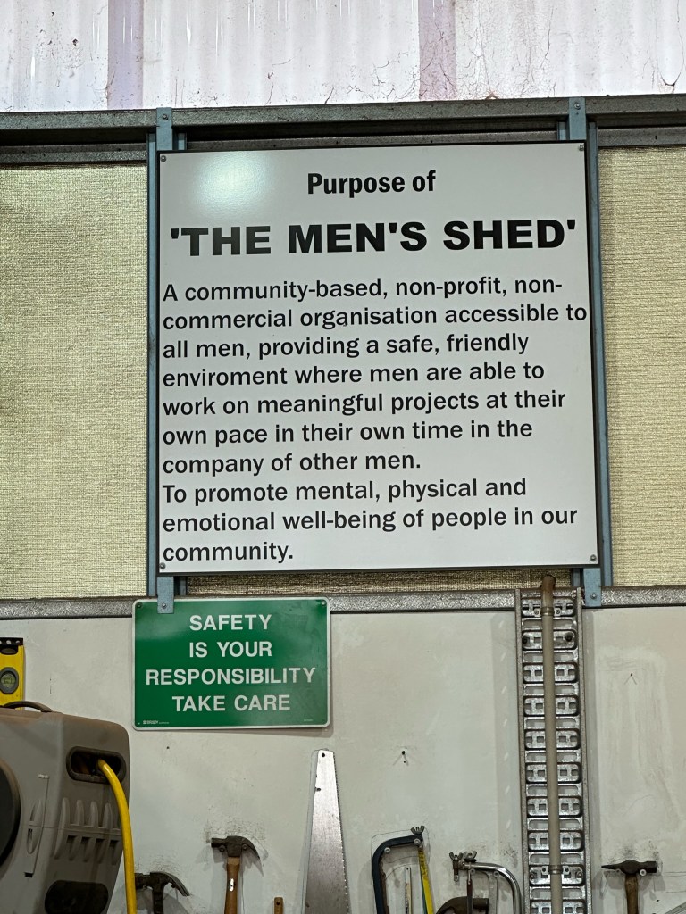 Rosemary ist eine weitere entfernte Verwandte von Carole. Sie und ihr Mann Richard sind heute extra nach Collie gefahren um mit uns den Tag zu verbringen. Auf einem Spaziergang durch Collie haben wir verschiedene Wandmalereien an Hauswänden bewundert und später bei einem ausgiebigen Mittagessen Familientratsch ausgetauscht und über alles Mögliche diskutiert. Beim Rundgang durch Collie ist mir ein grosser Schuppen aufgefallen, der mit „Men’s Shed“ beschriftet war. Auf meine diesbezügliche Frage erfuhr ich, dass sich in diesem Schuppen viele Werkzeuge zur Holz- und Metallbearbeitung befinden und alle Männer im Schuppen die Werkzeuge benutzen dürfen. Die Idee dahinter kann einem der nachfolgenden Fotos entnommen werden. Auch das etwas Nachahmenswertes.