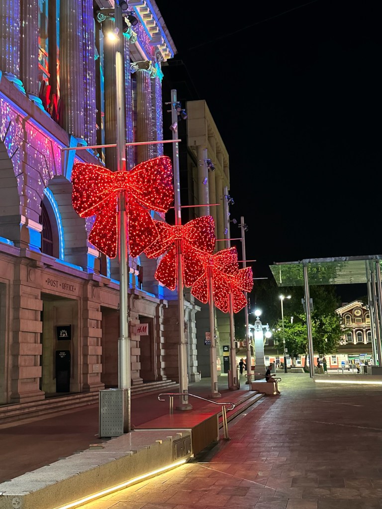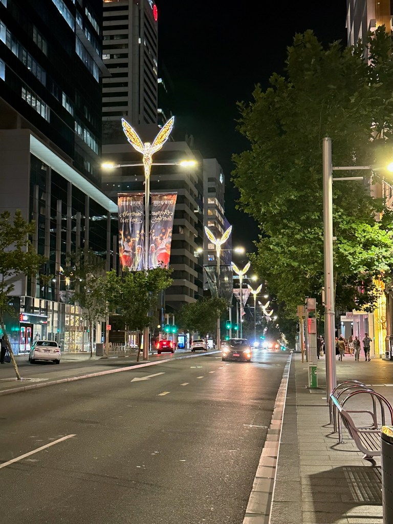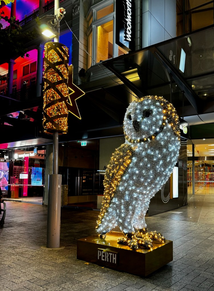 Am Mittwoch haben wir tagsüber gefaulenzt. Am Nachmittag bin ich dann zu Strand von Scarborough gewandert, bevor wir abends ins Zentrum von Perth sind. Nach einem Znacht am Hafen sind wir durch das Zentrum geschlendert und haben uns von den vielfältigen Adventsbeleuchtungen überraschen lassen. Unglaublich was es da alles zu sehen gab. Nicht nur hatte jede Strasse eine andere aufwendige Beleuchtung, sondern auf einige öffentliche Gebäude und Kirchen wurden bewegte Adventsmotive projiziert – natürlich jeweils mit zugehöriger Musik untermalt (siehe Fotos, Rio Tinto war Sponsor). Die Weihnachtsbeleuchtung war schlicht und einfach ein Fest für die Augen – man konnte sich vom Anblick kaum losreissen.