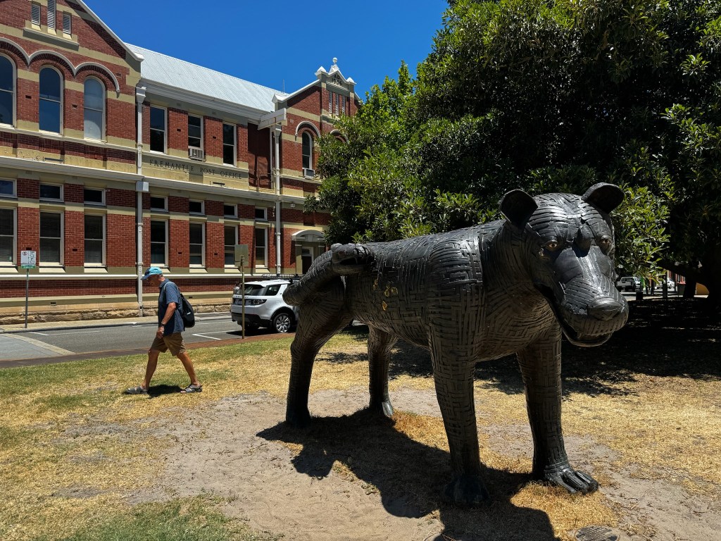Heute war Fremantle unser Ziel. Wieder sind wir mit dem Bus ins Zentrum von Perth gefahren. Auf dem Hinweg erwischte mich kurz vor dem Einsteigen in den Bus überraschend ein Hexenschuss. Glücklicherweise bin ich das inzwischen gewohnt. Mitz etwas Vorsicht und gehen wie auf rohen Eiern konnten wir unser Programm durchziehen. Das bedeutete zuerst eine Wanderung vom Bahnhof zum Pier von wo aus wo wir mit einem Schiff auf dem Swan River in 5/4 £Stunden nach Fremantle gefahren sind. Das Zentrum von Fremantle haben wir zu Fuss erkundet und insbesondere die Häuserzeilen mit der reichhaltigen Architektur aus dem 19. Jahrhundert bewundert. Bevor wir den Zug zurück nach Perth genommen haben besuchten wir das Schiffswrackmuseum. Der Besuch auch dieses Museums war mehr als lohnenswert. Nachdenklich gemacht haben uns die Geschichten über die vielen traurigen Schicksale von Schiffbrüchigen. In Perth angekommen sind wir nochmals etwas herumgeschlendert und haben in einem malayischen Kopitiam (Restaurant) entsprechende Kost genossen. Bei einem Glas Wein bin ich jetzt am Schreiben 😋.