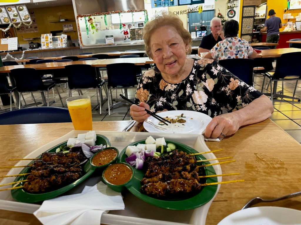 Am Dienstag haben wir verschiedene Verwandte und Bekannte von Carole Familie getroffen. Mit Jean (Cousine von Caroles Mutter) haben wir in einem lokalen Food Court char kway teow und satay gegessen.