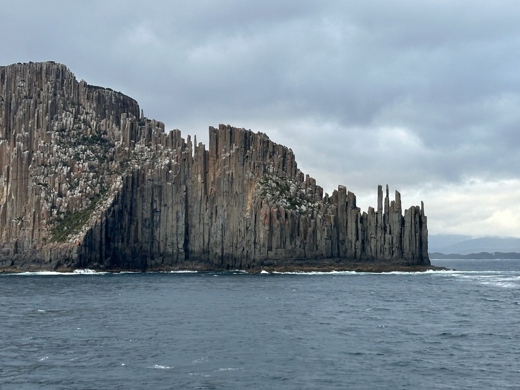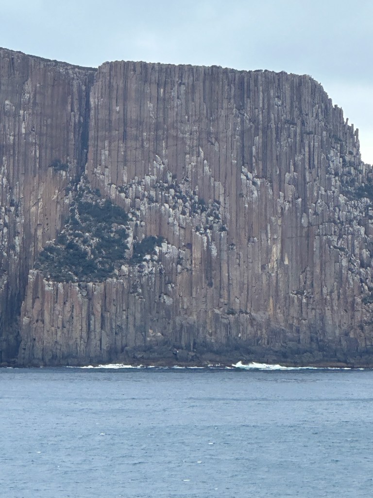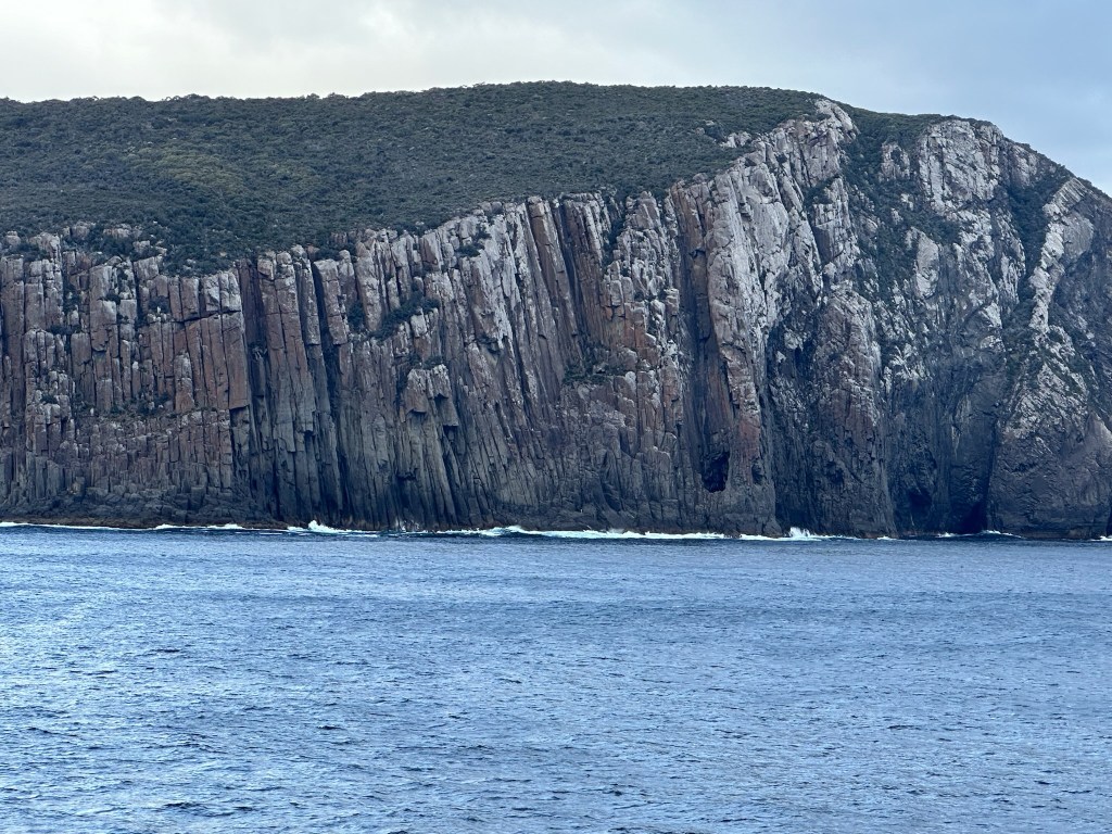 Am Dienstag hat unser Schiff, Le Lapérouse, pünktlich nach Fahrplan abgelegt. Das Embarking gestaltete sich absolut problemlos, auch die Zollkontrolle in Hobart ging schnell vonstatten. Zunächst fuhr unser kleines Kreuzfahrtschiff durch die Storm Bay Richtung offenes Meer. Kurz bevor wir dieses erreichten durchfuhren wir einen der weltweit gefährlichsten Küstenabschnitte entlang spektakulärer Felsformationen. Zu Beginn der Überfahrt war das Meer noch recht ruhig. Die Wellenhöhe allerdings nahm allmählich zu. Am Donnerstag war die Dühnung dann sehr stark mit Wellenhöhen bis über 5 Meter. Das Schiff schaukelte auf und ab und es rollte merklich in der Dühnung. Nachts im Bett verursachte dies regelmässige Achteldrehungen des Körpers, abwechselnd nach rechts und nach links. Dafür mussten sich jene, die etwas über den Durst getrunken hatten nicht schämen – beim Gang durch das Schiff war die gerade Linie durch niemanden zu halten. Erstaunlicherweise hat mir das Schaukeln nichts ausgemacht, ich fand es sogar interessant. Vielleicht auch, weil ich mich an die 5 Regeln gegen Seekrankheit gehalten habe: 1. genug essen, 2. genug trinken, 3. genug schlafen, 4. nicht frieren, 5. keine Angst haben