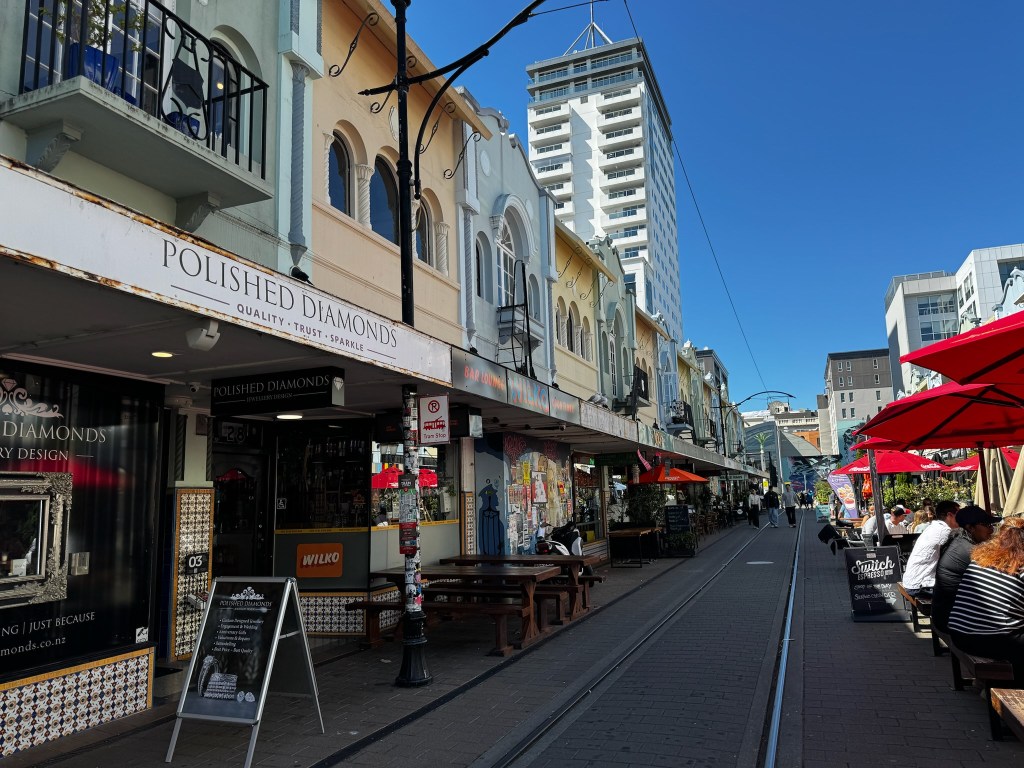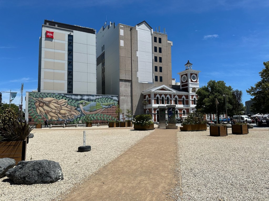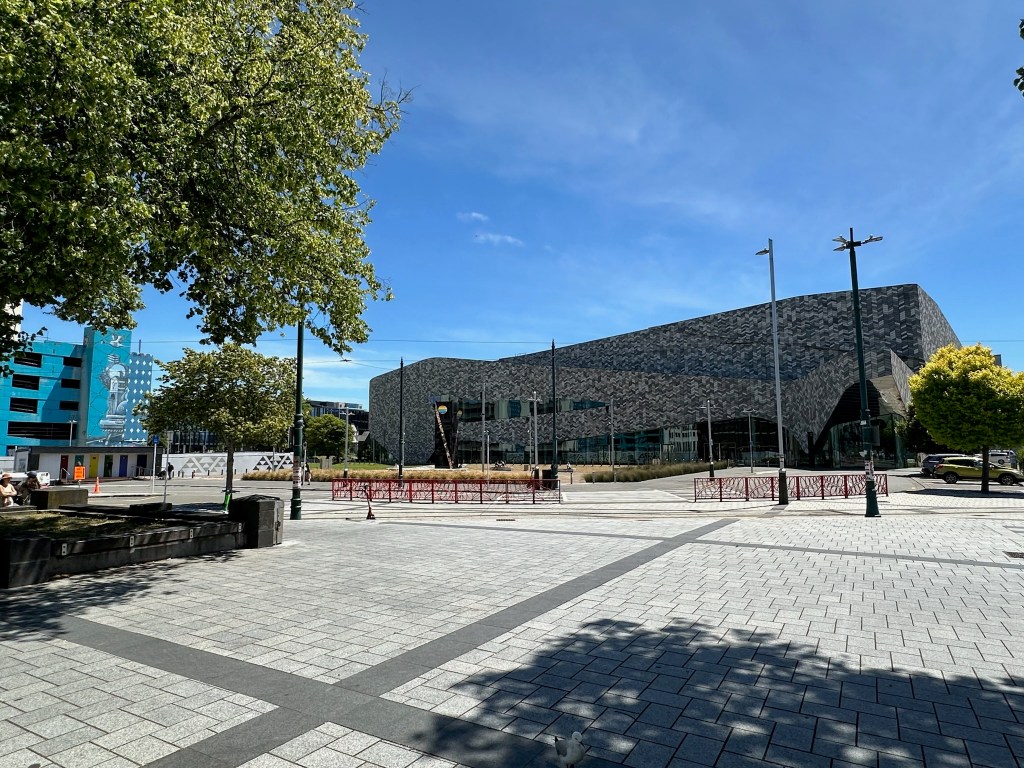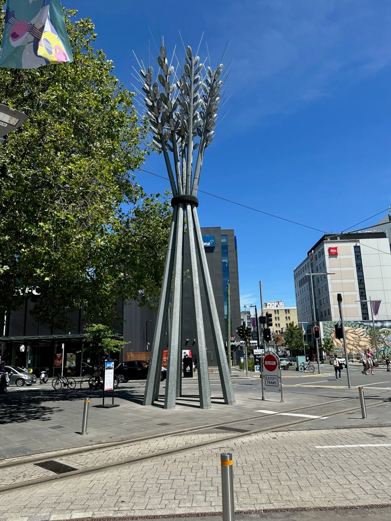Gestern Nacht haben wir den ersten Teil unserer Rundreise auf der Südinsel geplant und Hotelreservationen vorgenommen und dafür heute Morgen ausgeschlafen. Nach dem Frühstück sind wir mit Newells Auto ins Zentrum von Christchurch gefahren und haben die Stadt zu Fuss erkundet. Vor 13 Jahren wurde Christchurch von einem starken Erdbeben erschüttert deren Folgen man heute noch sieht. Einerseits sind immer noch einsturzgefährdete Bauten unbewohnbar und auch die damals zerstörte Kathedrale ist noch nicht fertig erneuert. Anderseits sind viele Gebäude neu. Jacqui und Newell haben uns erzählt wie sie damals das Erdbeben erlebt haben – ihr Haus wurde beim Beben auf Grund massiver Schäden unbewohnbar.