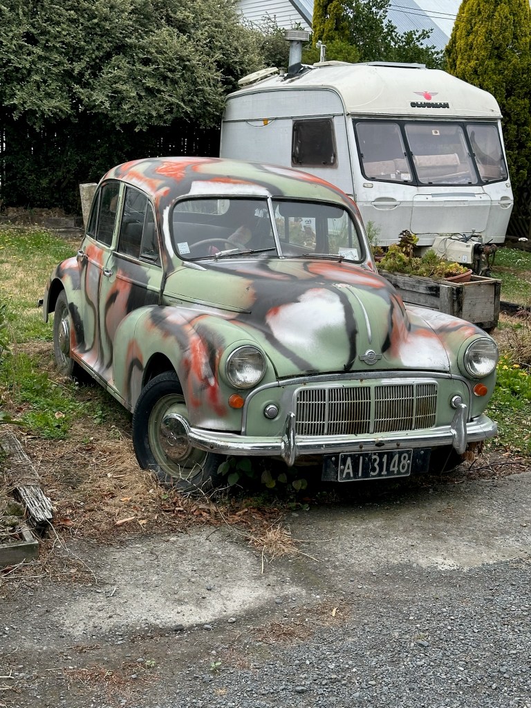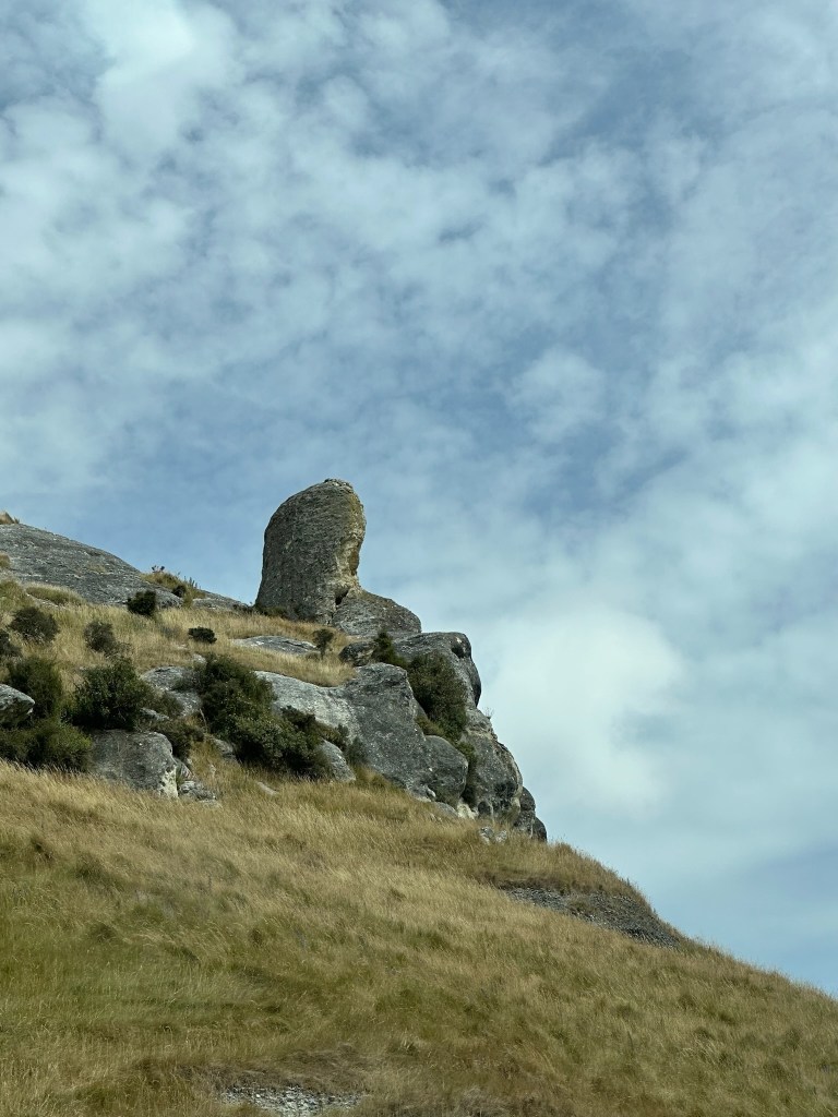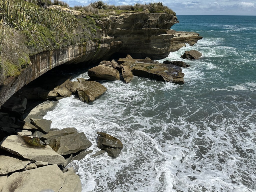 Nach einem Bummel durch Timaru mit ansehnlichen Bauten aus der viktorianischen Zeit wollten wir die Maori Rock Drawings in der Nähe von Cave besuchen, ca. 30 km von Timaru entfernt. Nach rund 70 Minuten suchen, wir wollten schon aufgeben, da es keinerlei Wegweiser gab. Am Ende eines Kieswegs und anschliessendem Anstieg durch hüfthohes Grashaben wir diese dann doch noch gefunden.