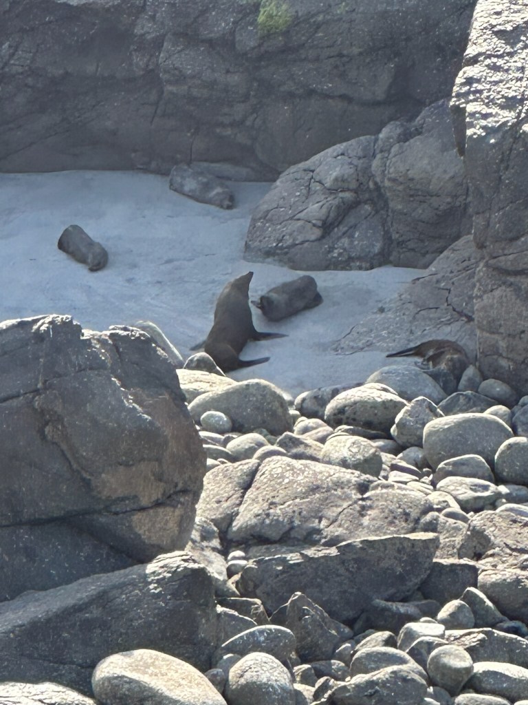 Nach dem Bezug unseres Zimmers im Zentrum von Westport sind wir noch vor dem Nachtessen zur Tauranga Bay, wo sich eine Robbenkolonie befindet, gefahren. Leider habe ich den Feldstecher im Zimmer vergessen – trotzdem konnten wir die Robben gut beobachten und fotografieren. Wir hörten wie die Robbenbabies nach ihren Müttern riefen, damit diese vom Meer her kommend ihren Nachwuchs finden und füttern konnten. Übrigens: Von Zürich sind wir zur Zeit 18’539 km entfernt.