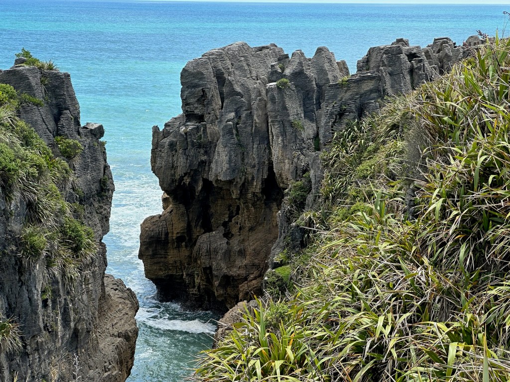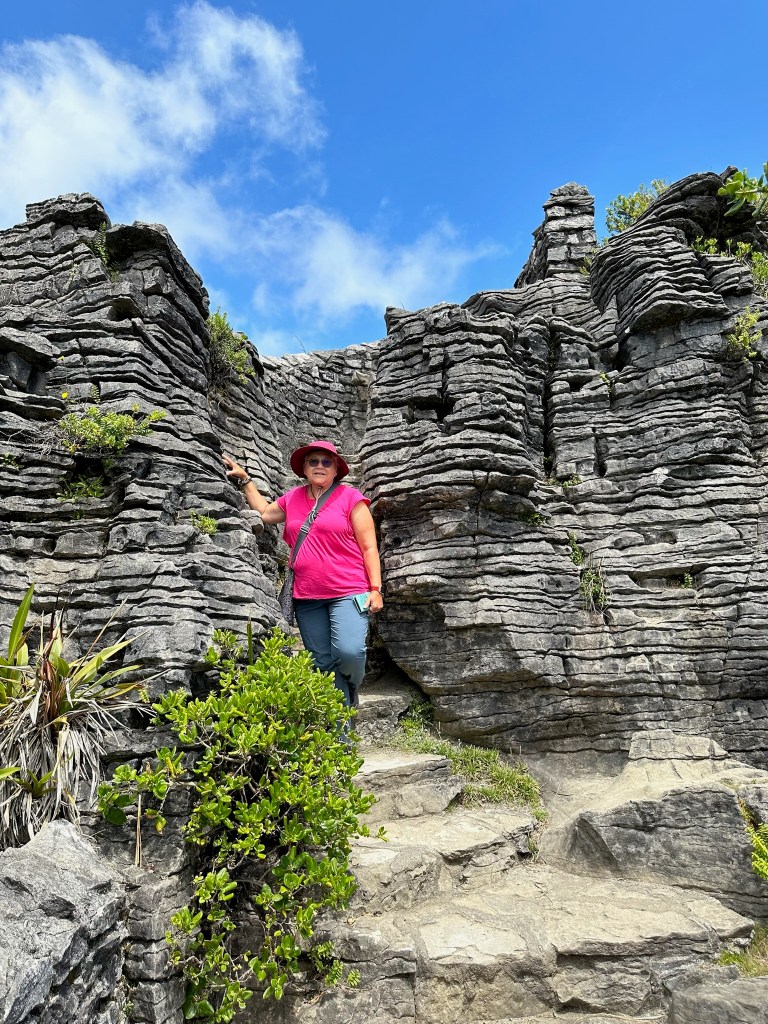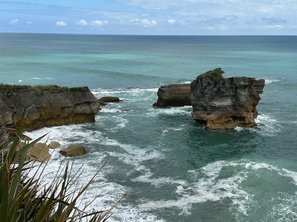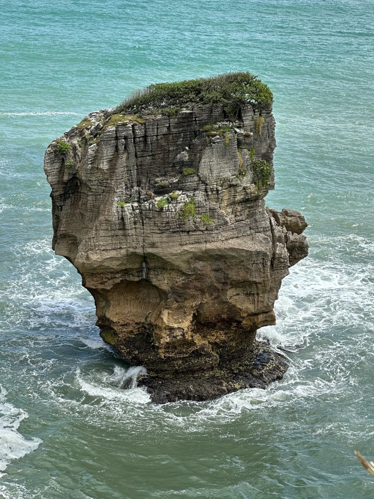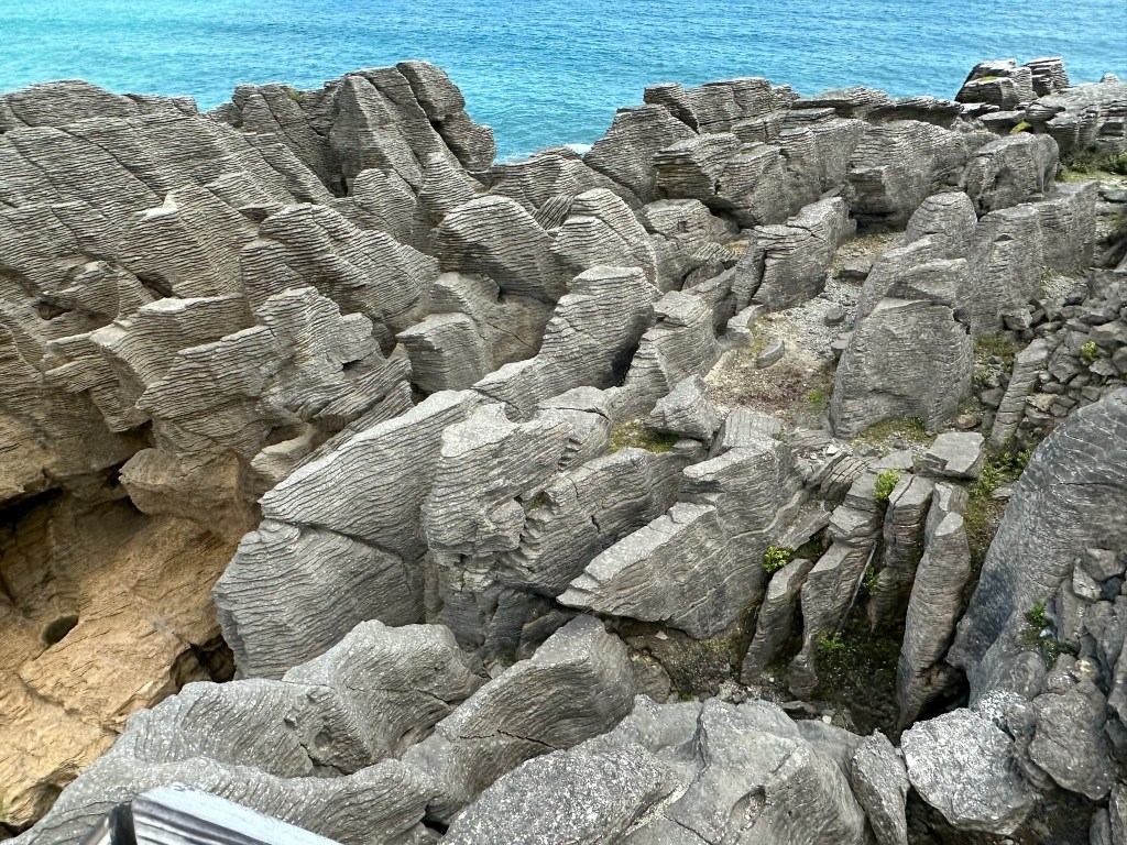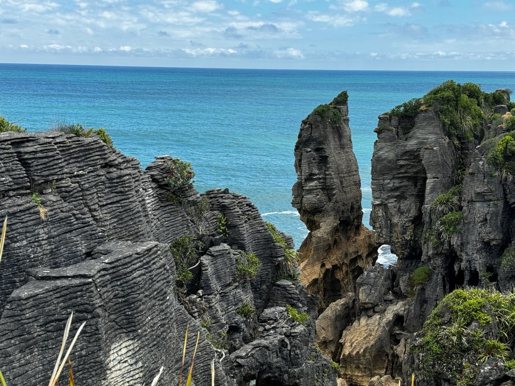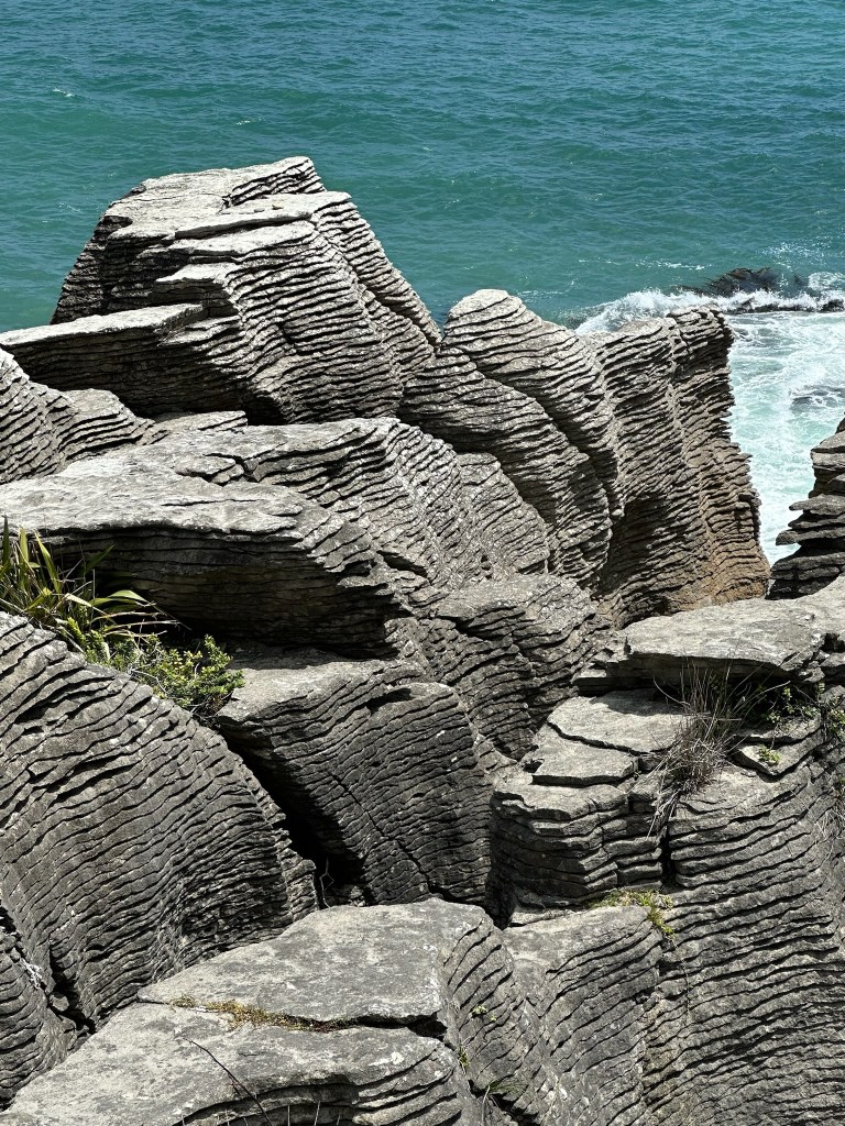 Auf der Great Ocean Road sind wir nach dem Frühstück entlang spektakulärer Küstenabschnitte Richtung Süden gefahren. Unser erster Halt galt dem Besuch einer Goldmine aus der Mitte des vorletzten Jahrhunderts. Auf einem Rundweg entlang eines uralten Bahntrassees sind wir durch enge Tunnels geschlendert und haben haufenweise „Eisengrümpel“ aus alter Zeit studiert. Den zweiten Halt legten wir beim Truman Track ein. Der gut unterhaltene Weg führte durch dichten, dschungelartigen Wald hinab zum Meer. Mehrmals konnte man auf dem Weg anhalten und atemberaubende Bilder der wilden Küste aufnehmen und dem Donnern und Tosen der Brandung zuhören. In Punakaiki besuchten wir die Pancake Rocks. Dieser Küstenabschnitt ist weltweit absolut einmalig. Die Felsen sehen aus wie aufeinandergeschichtete dünne Omeletten. Ihre Entstehung ist den Wissenschaftlern teilweise immer noch ein Rätsel.