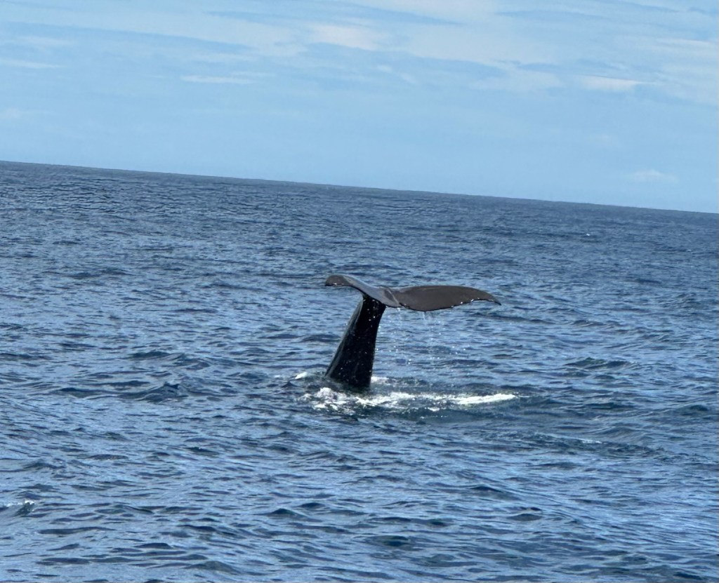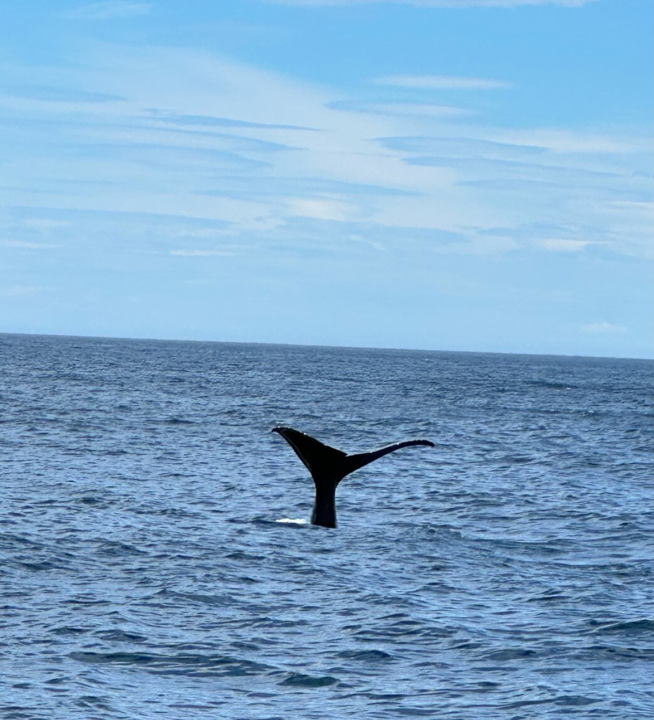 Heute berichte ich nur von der Whale Watching Tour. Mit einem nicht sehr grossen Schiff sind wir mit rund 70 kmh aufs offene Meer hinausgefahren. Aus Sicherheitsgründen mussten während der Fahrt alle Passagiere im Innern auf Stühlen sitzen. Am Ziel, über einem mehr als 1000 Meter tiefen Ozeangraben hielt das Boot an. Das Wasser ist hier ausgesprochen nährstoffreich und bietet genügend Nahrung auch für Grosswale. Wir durften das Schiffsinnere verlassen, nun hiess es warten. Die Dünung war deutlich spürbar und als sich das Schiff in Bewegung setzte ging es 2 bis 3 Meter abwechselnd rauf und wieder runter – es war ein richtiges Achterbahnfeeling. Bald schon sahen wir in einiger Entfernung die Wasserfontäne von einem Pottwal. Wer Moby Dick gelesen hat, weiss wie der Wal aussieht und sonst einfach auf das unterstrichene Wort klicken. Unser Schiff fuhr vorsichtig näher zum Wal hin. Man konnte ihn gut beobachten. Ganz besonders beeindruckend war das Abtauchen des Wals: Für kurze Zeit ragte seine riesige Schwanzflosse weit aus dem Wasser bevor der Wal majestätisch in der Tiefe verschwand.