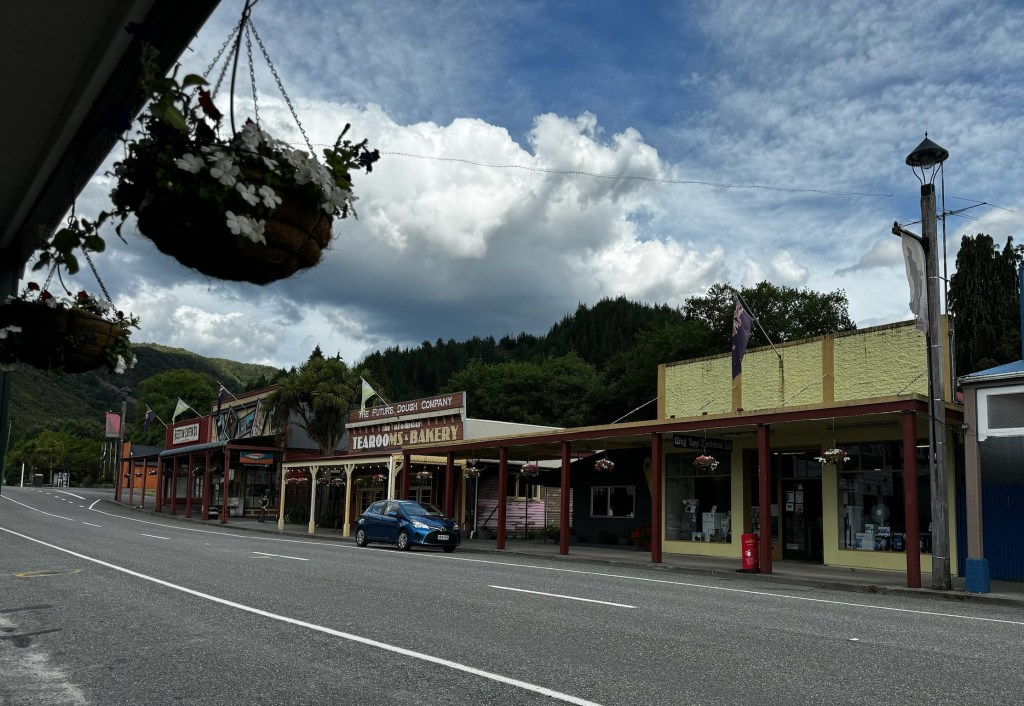 Temawheratangaongakuwhaotuterangiwhanoa – nein!, ich habe mich nicht verschrieben. Das ist der Ort Australiens mit dem zweitlängsten Maori-Namen. Die englische Übersetzung des Zungenbrechers lautet „The gap in the hills created when Tuterangiwhanoa wriggled his thighs“, frei übersetzt „die Lücke in den Bergen entstand als Tuterangiwhanoa mit seinen Oberschenkeln wackelte“. Abgekürzt wird der lange Name mit „Mawhera“, auf der Karte wird der Ort mt Greymouth bezeichnet. Tuterangiwhanoa war der Überlieferung nach ein riesiger Halbgott. In Greymouth haben wir den Ort kurz durchstreift, einen 4-o’clock-Tea getrunken und sind dann weiter nach Hokitika.