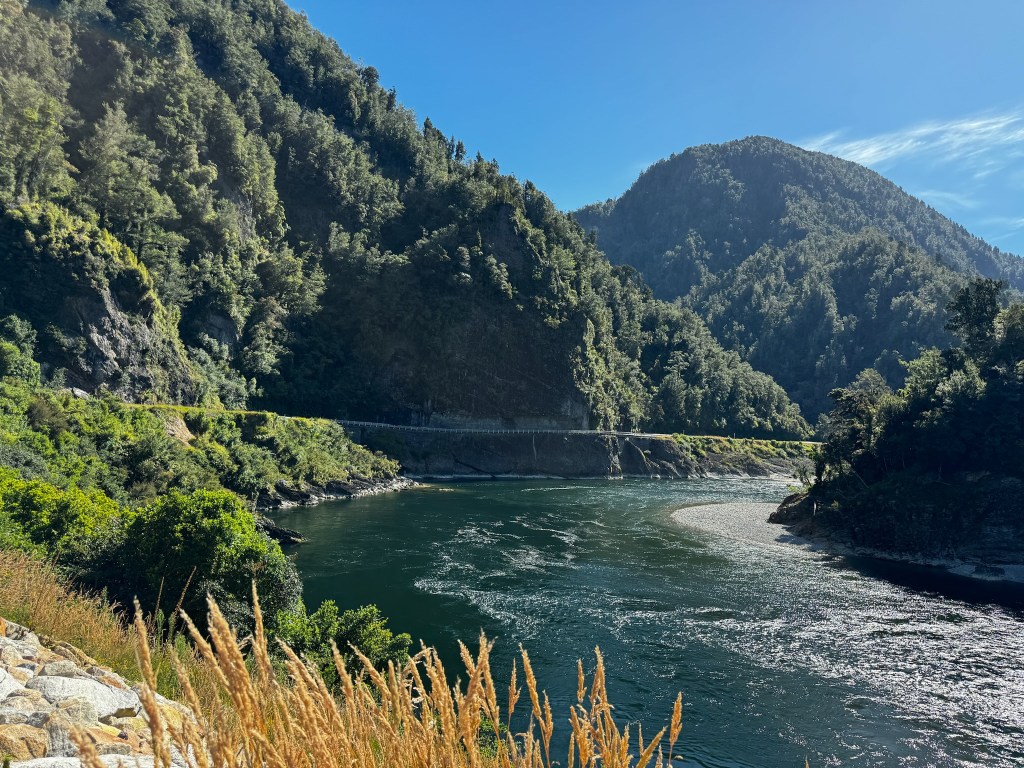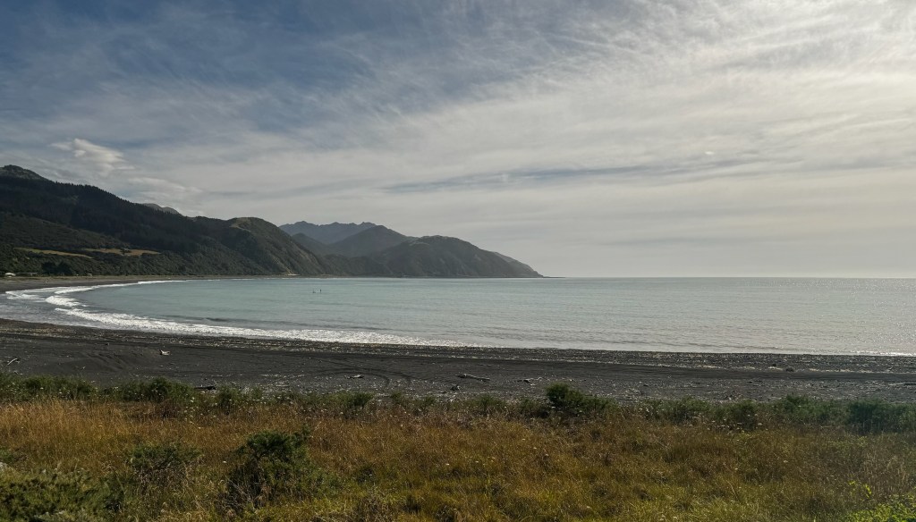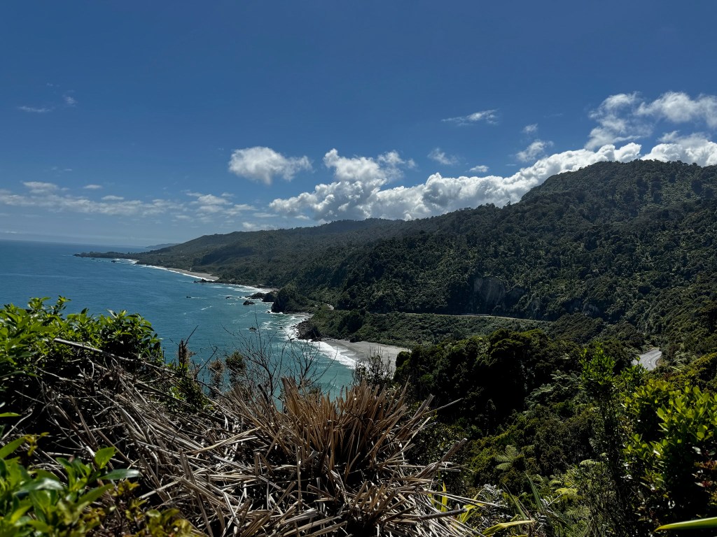 Den Tag haben wir mit Packen angefangen, anschliessend das uns von Newell geliehene Luxusauto zurück gebracht und beim Flughafen unseren Kleinwagen, einen Toyota Yaris, für die nächsten 7 Tage abgeholt. Mit diesem haben wir im Norden der Südinsel die Neuseeländischen Alpen über den 863 Meter hohen Lewis Pass überquert und sind gegen Abend in Westport angekommen. Unterwegs mussten wir noch etwas Glück beanspruchen, denn ein Fahrzeug hat Holzstücke verloren, welche auf der Strasse herumlagen. Einem Stück, vergleichbar einem Holzscheit, konnte ich nicht ganz ausweichen und fuhr mit dem linken Hinterrad mit ca. Temp 80 drüber. Es hat ziemlich „tätscht“. Eine Kontrolle vom Pneu zeigte jedoch keinen Schaden. Kurz darauf musste ich nach einer Kurve ziemlich abrupt bremsen – vor mir stand ein Polizeiauto mitten auf der Strasse, der Polizist hat Holzstücke auf der Strasse aufgesammelt. Der Rest der Fahrt war dank der schönen, abwechslungsreichen Landschaft auch ohne Adrenalinschub interessant.